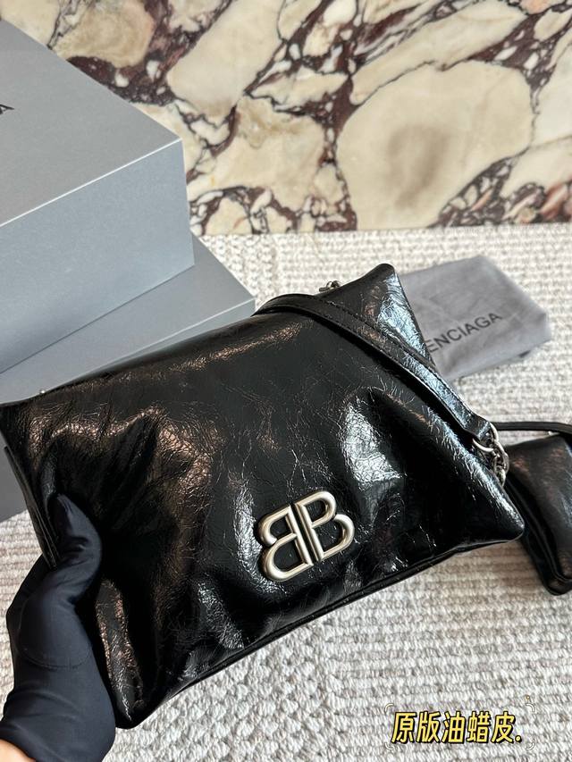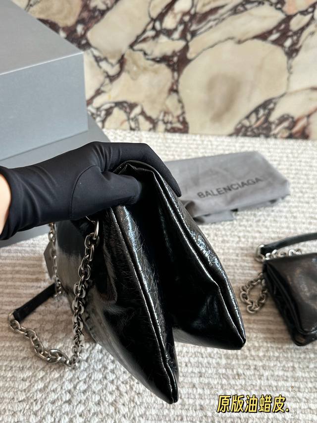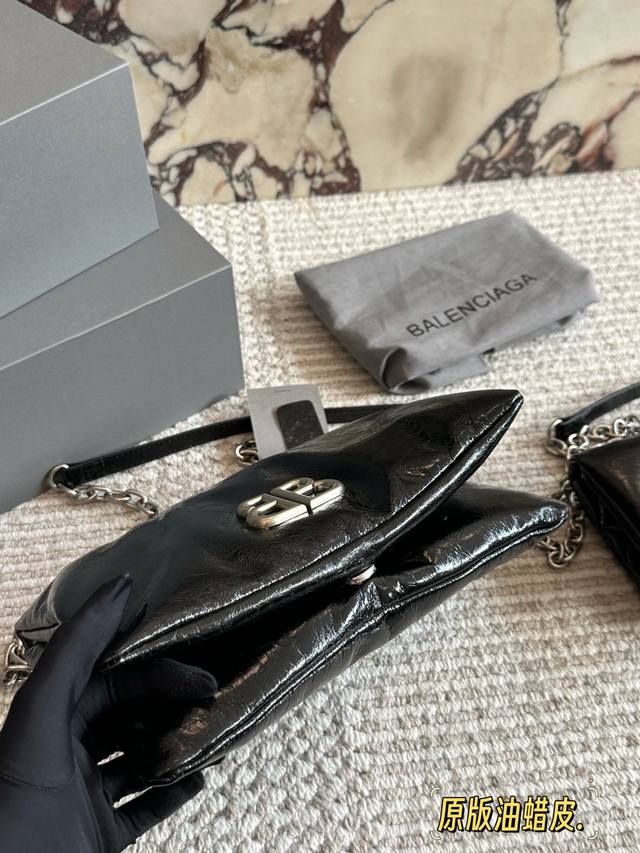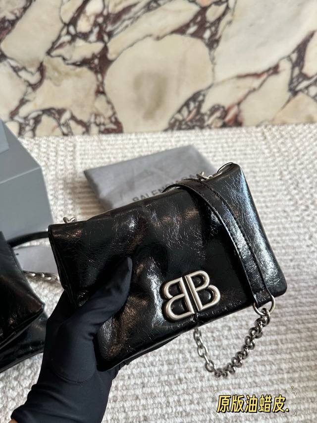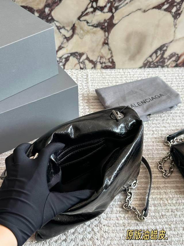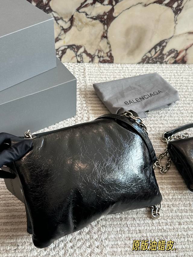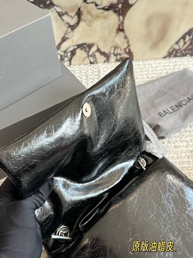 Comes with box. Made of waxed leather. Size: 26 x 20cm (Original Price: 17 x 12cm). Balenciaga's new chain bag. It's so beautiful! It's so high-end! The size is just right, it can hold a lot, it's lightweight, and the adjustable chain gives it a luxurious feel.