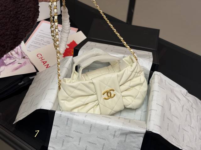 / Comes with box. Size: 18*16cm. Chanel 25K New Bow Chain Bag.