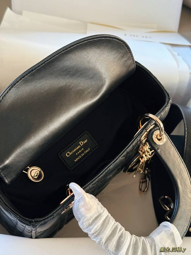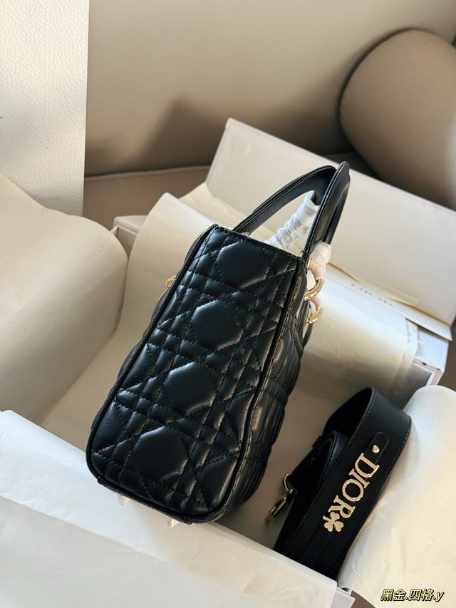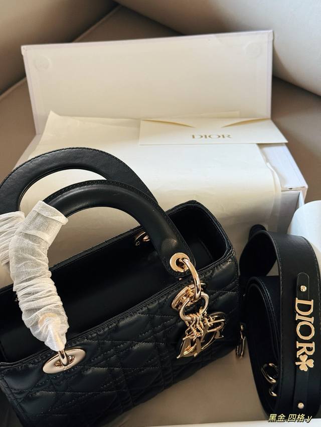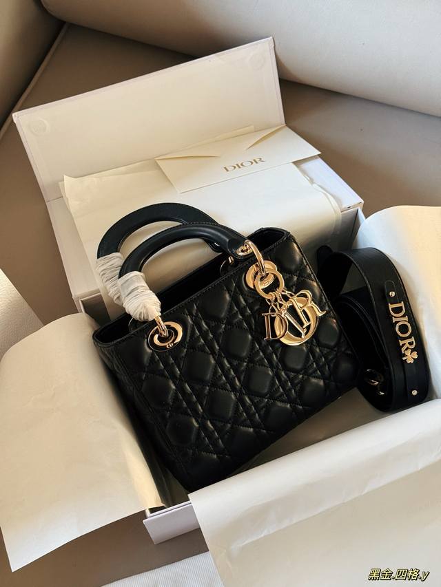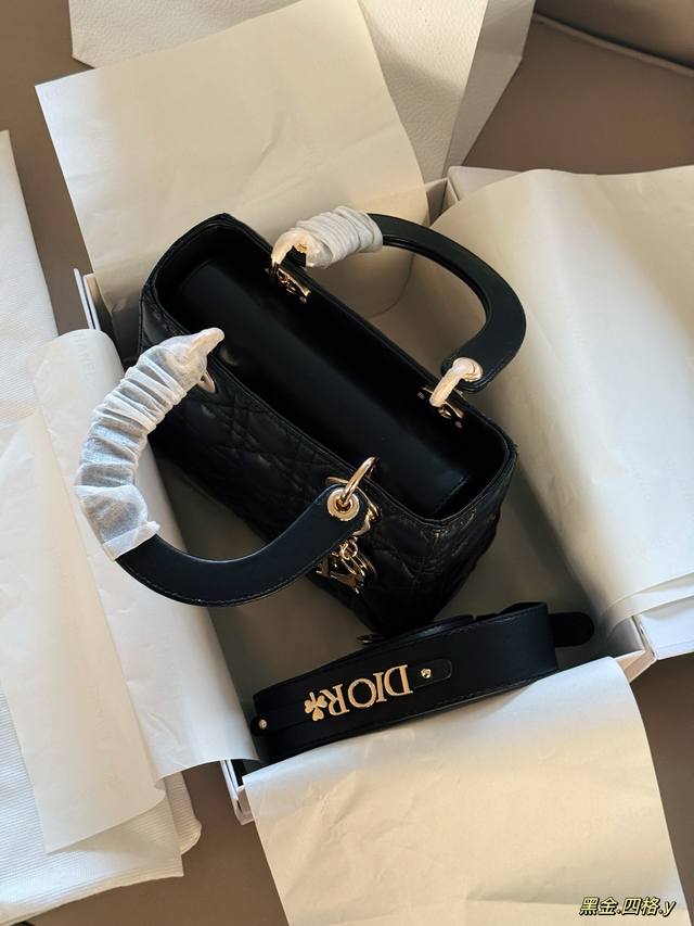 Comes with box. Size: 21cm. 4-compartment Dior Lady Black & Gold set is back! The Dior Lady Dior is absolutely stunning! High -end quality, compare the details freely. Don't get too carried away! It truly lives up to its reputation as the Dior Lady Dior.
