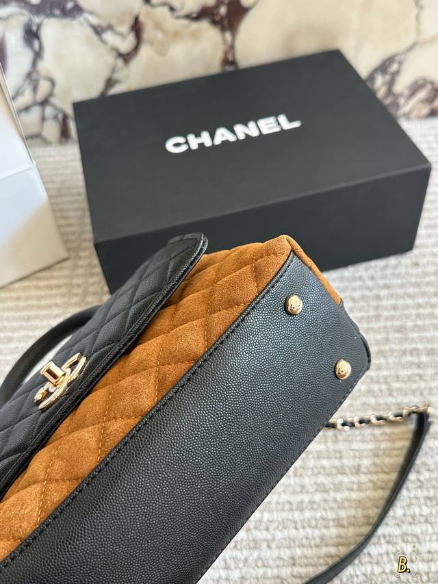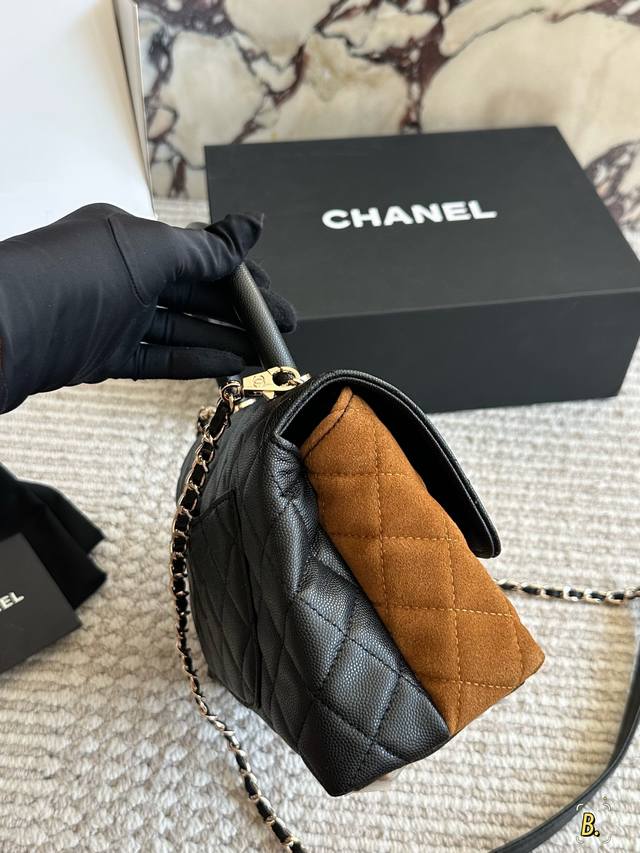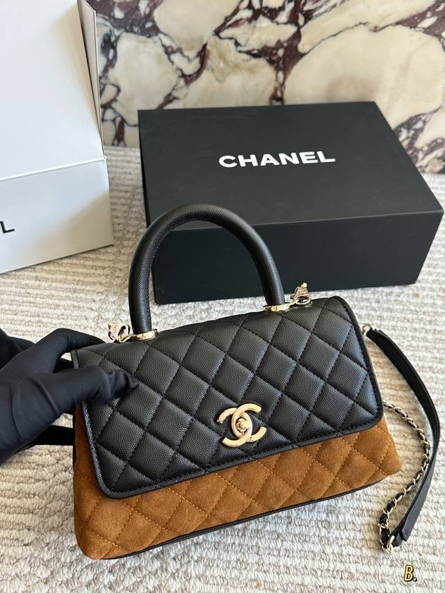 / Comes with box. Size: 22*13cm. Small Chanel Coco Handle bag. Grain leather. Orig