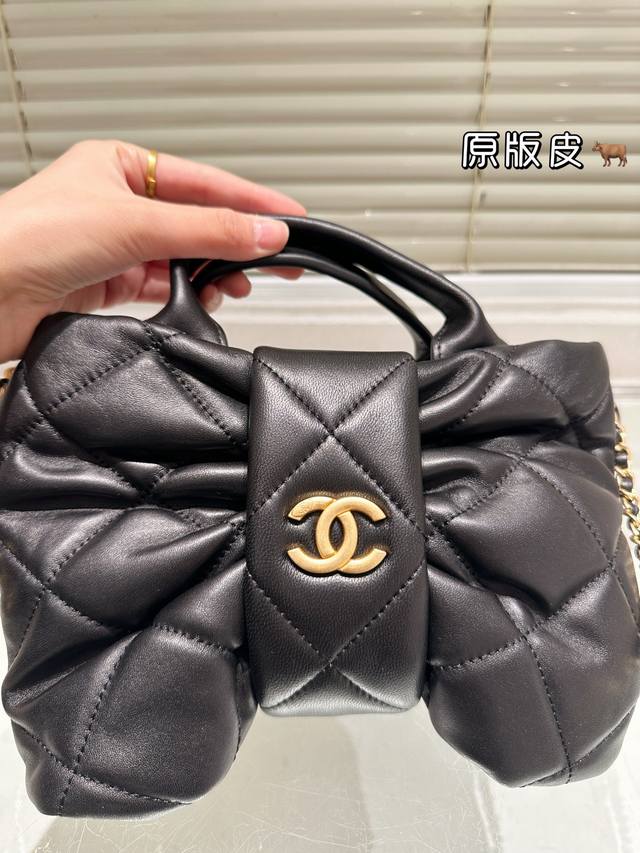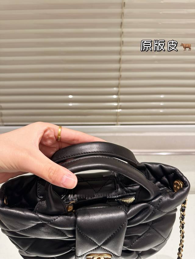/ Comes with box. Size: 25.18cm. Lambskin Chanel 25K New Bow Chain Bag.