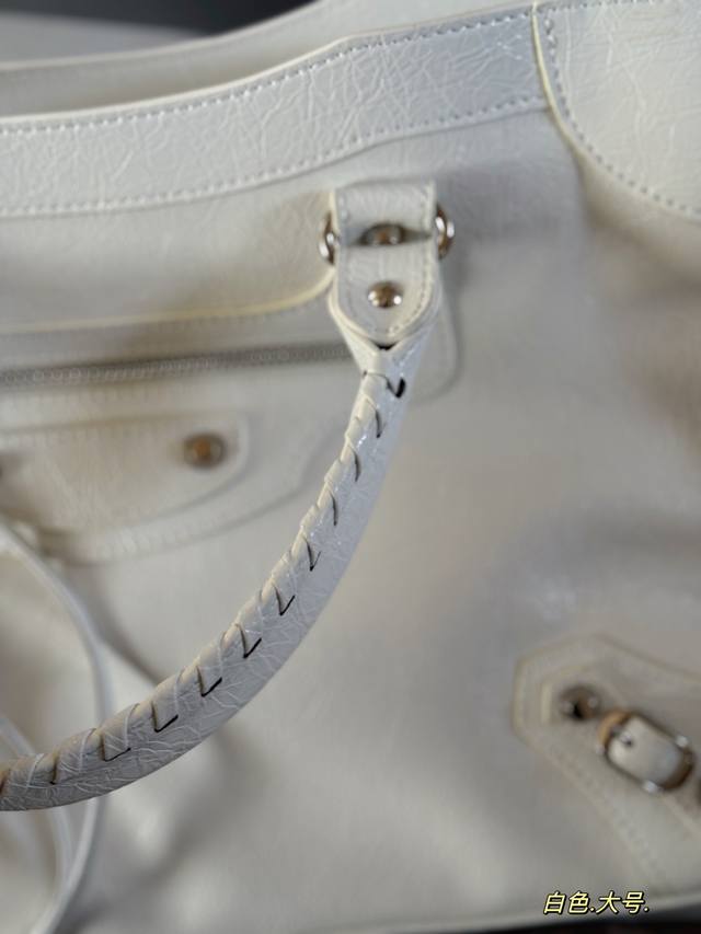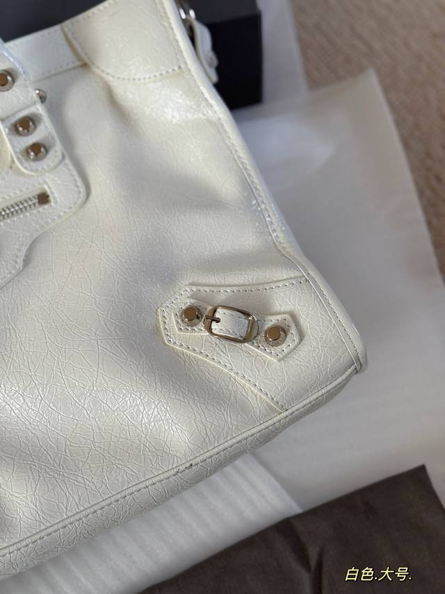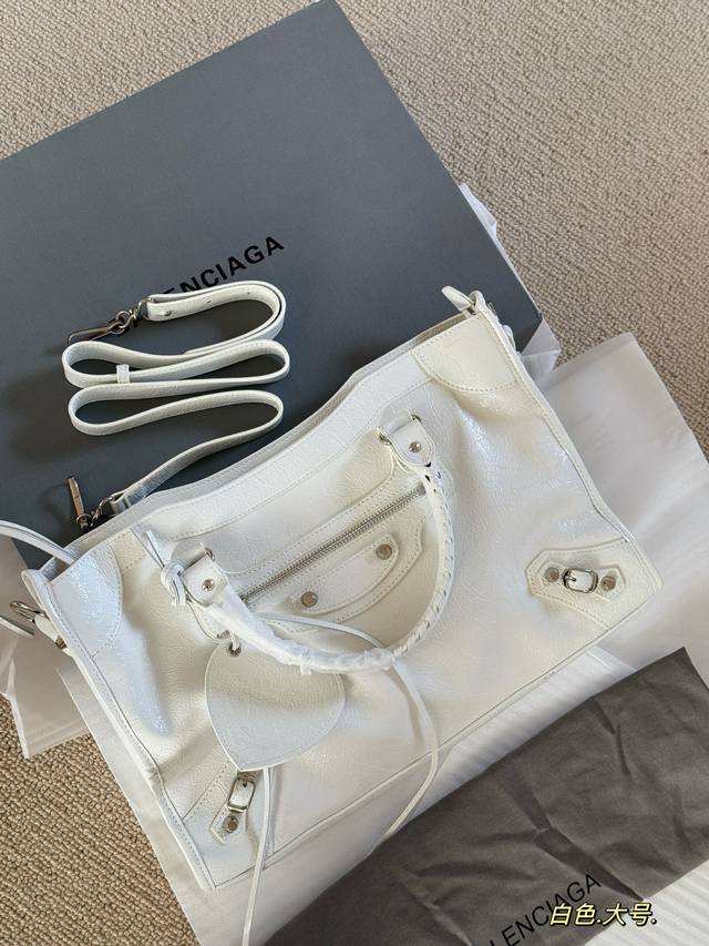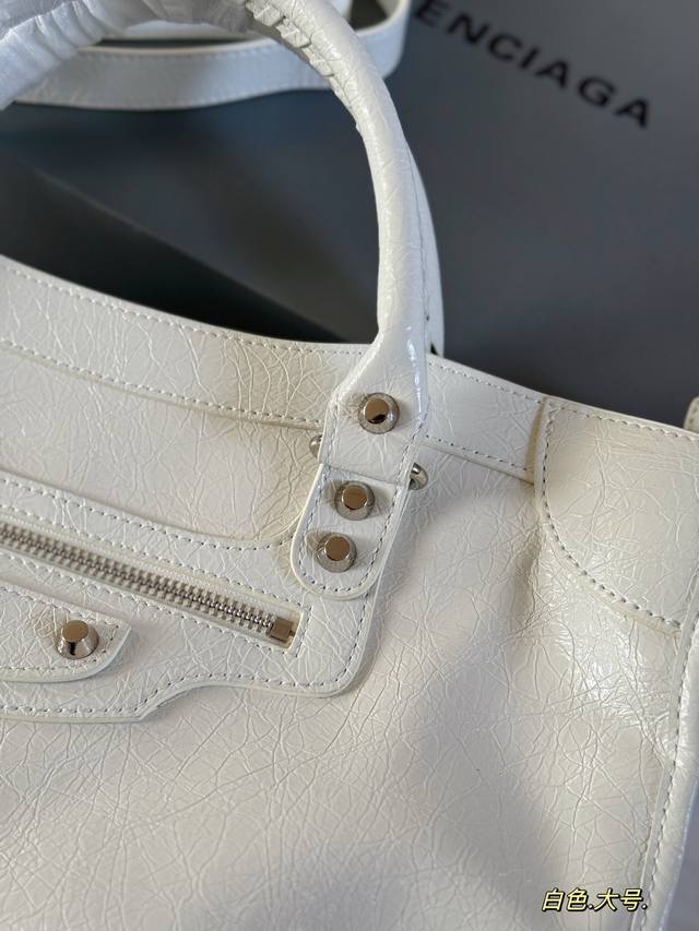 Comes with box. Size: 38*24cm. Large size Balenciaga Le City motorcycle bag is so comfortable to carry! The leather is super soft! It has a textured, wrinkled feel and is very durable! The Balenciaga Le City motorcycle bag looks great no matter how you wear it.