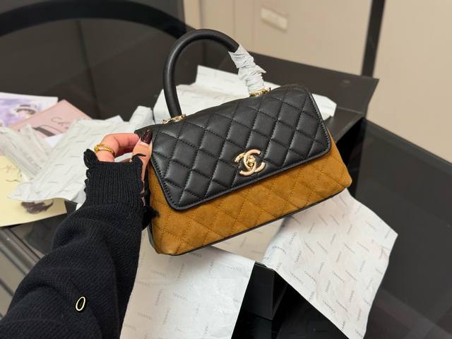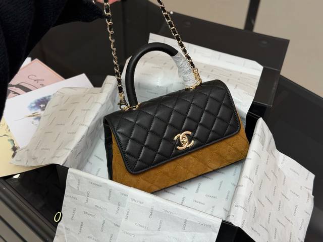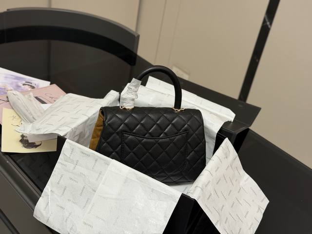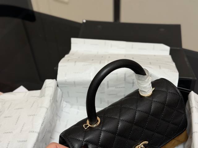 Comes with folding box/airplane box. Size: 23*14cm. Chanel Coco Handle handbag.