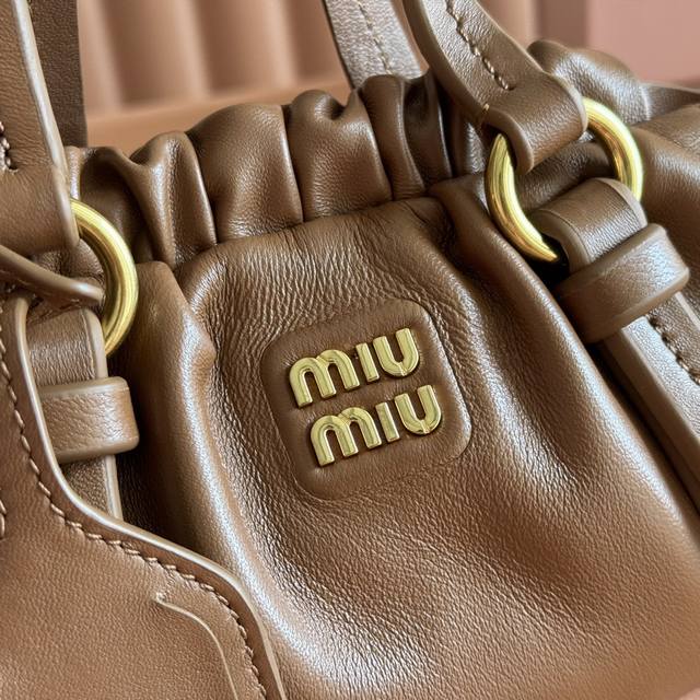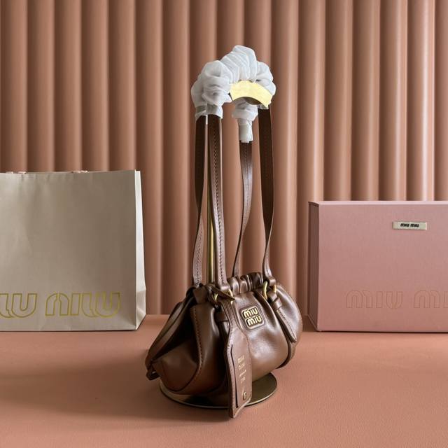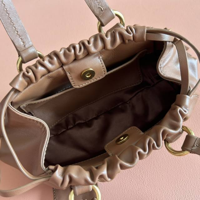 ). Made of brand new sheepskin with distressed steel hardware, exuding a high-end and elegant feel. The drawstring closure and delicate pleated trim add a playful and three-dimensional touch. Sophisticated yet effortlessly chic, this unique design is universally flattering. Model: 5Bp120 Size: 22*7*15 mm