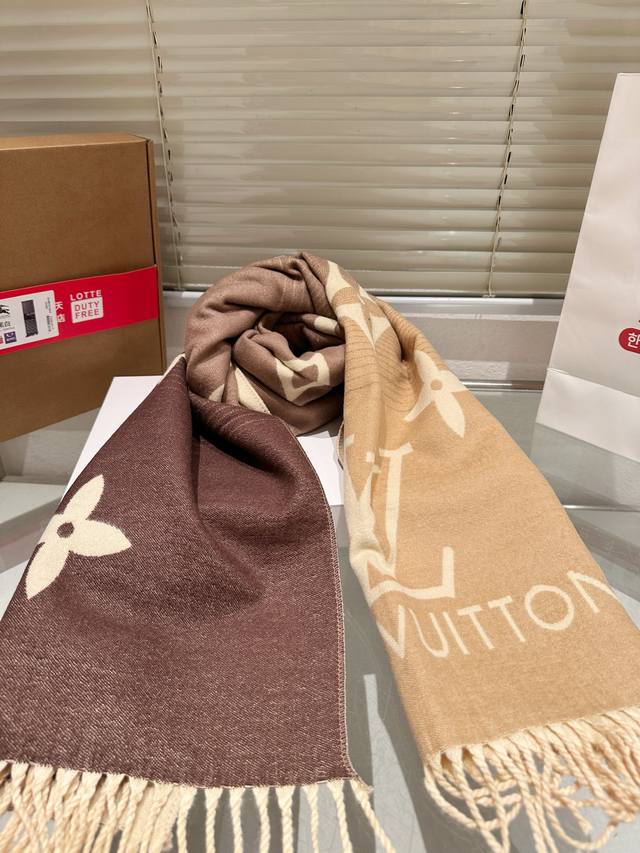 Comes with full Lotte packaging plus a shipping box. Classic scarf, high-quality materials! This scarf is suitable for spring, autumn, and winter! It looks great as a shawl! Brightens skin tone! The effect when worn is very powerful, the feel is soft and the color is high-quality. A masterpiece. Specifications: 95% wool + 5% silk.