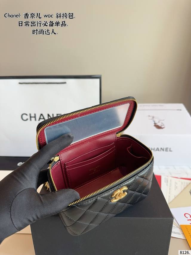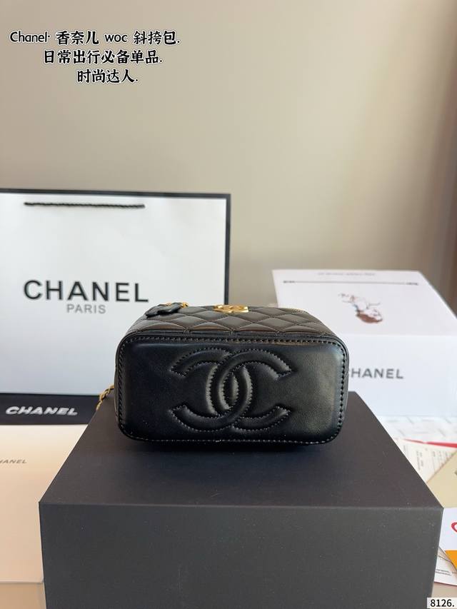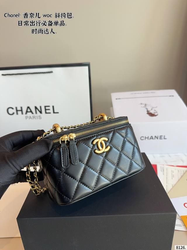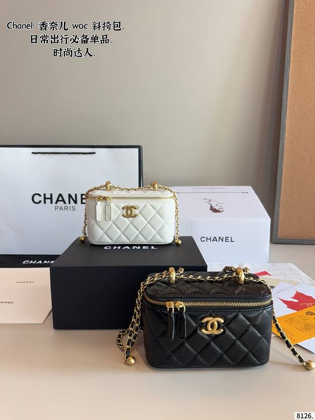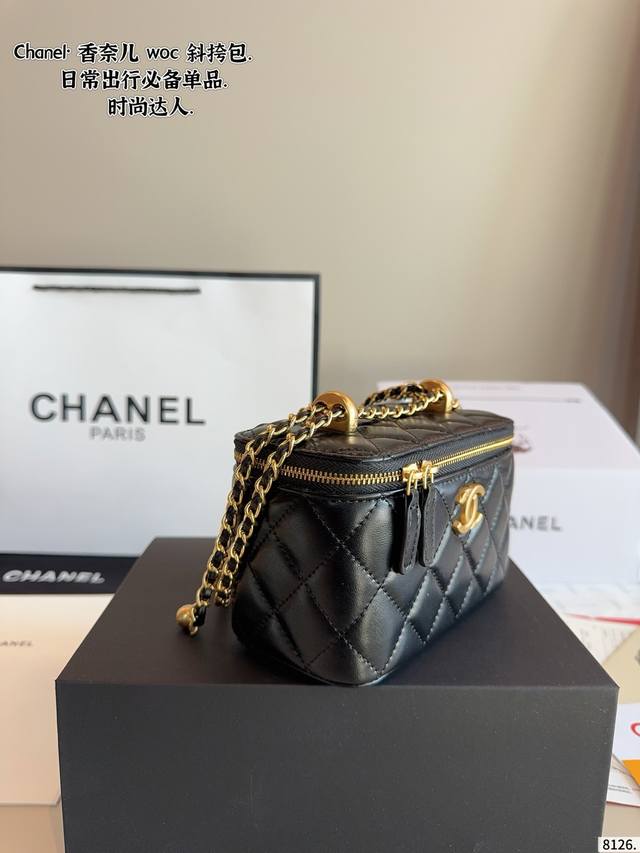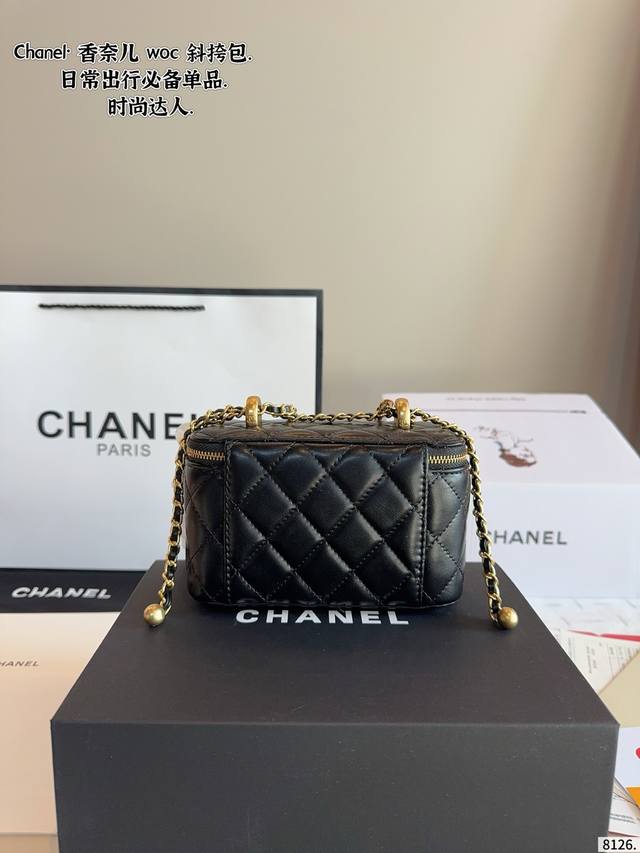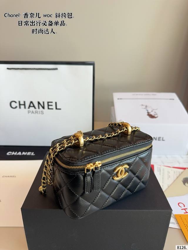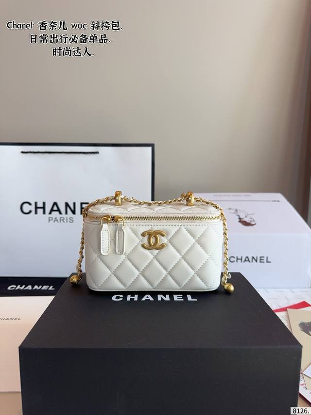 Comes with gift box. Chanel Woc gold ball box cosmetic bag. Very high-end feel. Super large capacity and durable. Guaranteed to turn heads when you carry it out. It has that casual, relaxed vibe. Dimensions: 17*8*10.Cm