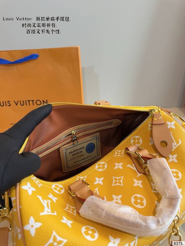 LV Speedy Pillow Bag. This Retiro handbag is crafted from the iconic LV monogram fabric with luxurious color-changing calfskin trim, a timeless classic. The elegant, understated design and spacious, fully enclosed monogram. Dimensions: 30*17*21cm.