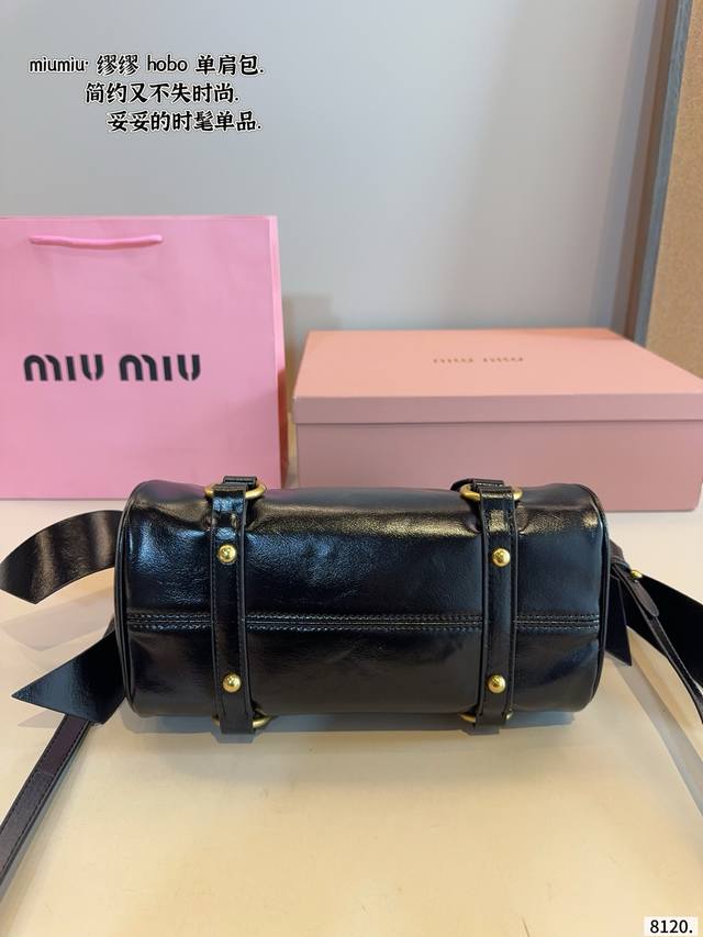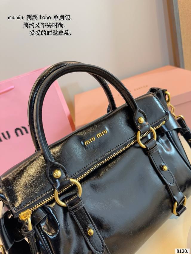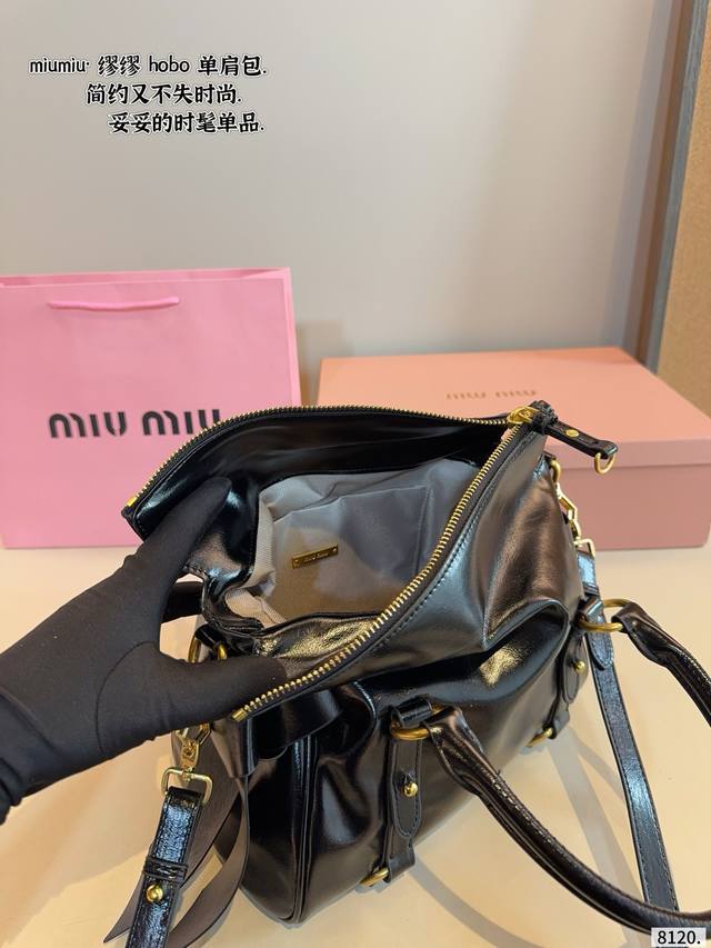 Comes with gift box. Miu Miu Vintage Motorcycle Bag. A cool vintage bag with multiple pockets, perfect for a motorcycle! Neutral, free-spirited, romantic, and unrestrained. The light brown color is refreshing and timeless, breaking free from constraints. The vintage style is somewhat reminiscent of Miu Miu bags. Dimensions: 26*13*25cm.
