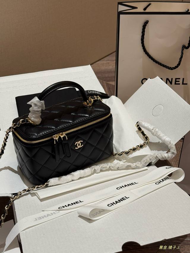 Comes with packaging. Size: 18*10cm. Chanel-style mirror box bag with handle. Lo