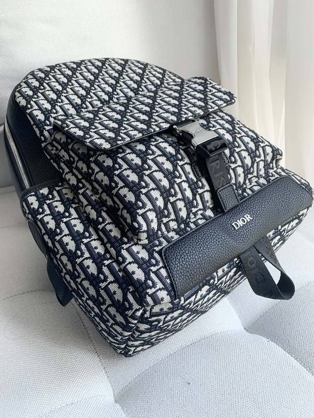 Dior 2022 New Explorer Series Men's Monogram Jacquard Backpack, latest imported canvas and calfskin leather, original quality, same as the official website, hardware that won't fade, quality guaranteed, super stylish, super practical, versatile, a timeless must-have item, size 36-42cm, beige.