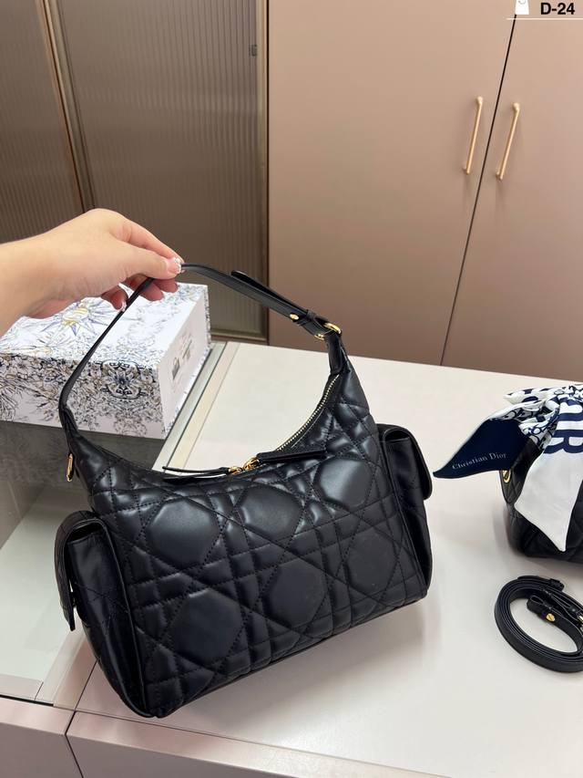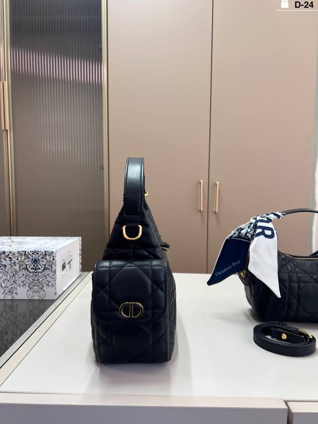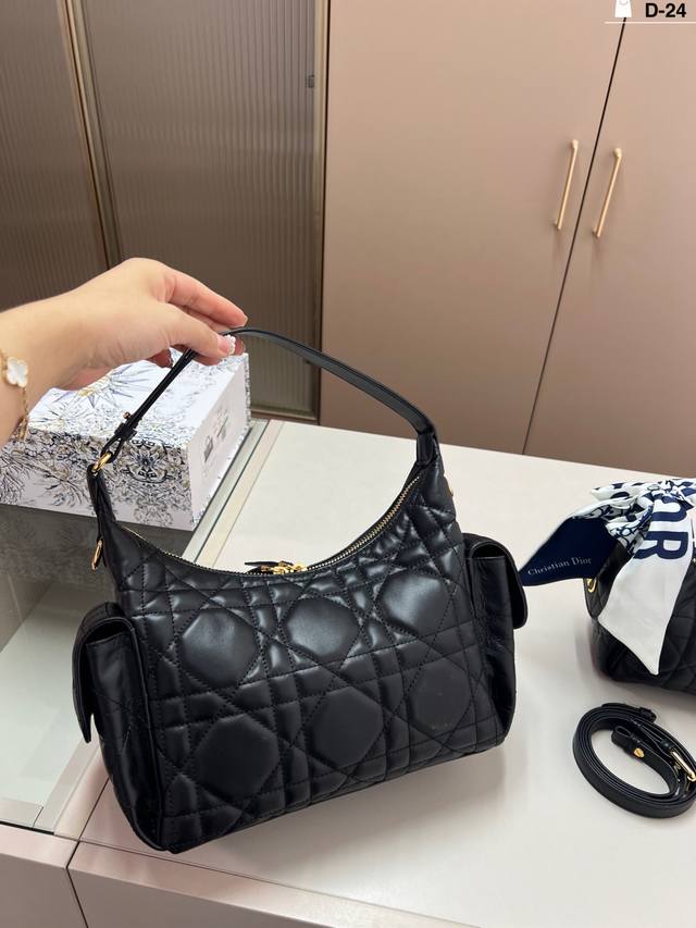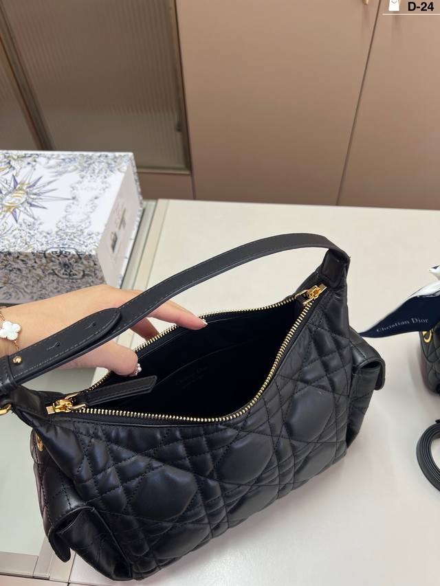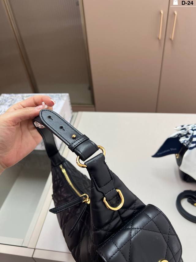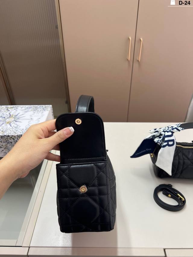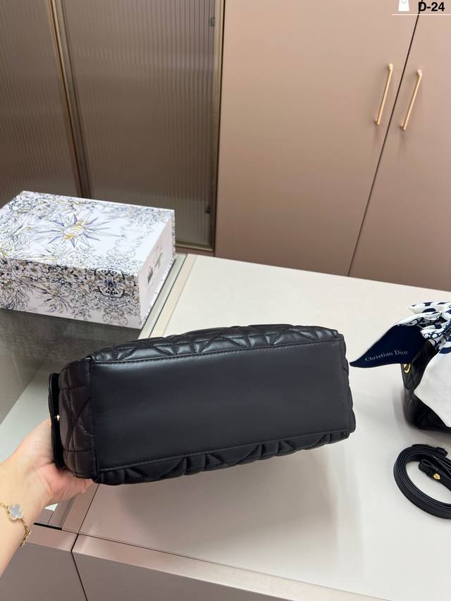 Dior D-Dream Handbag in premium leather. The leather version is made of breathable lambskin; you can sink into it when you squeeze it, and it slowly springs back when you release it. The feel is as soothing as petting a cat. D-24 size: 23