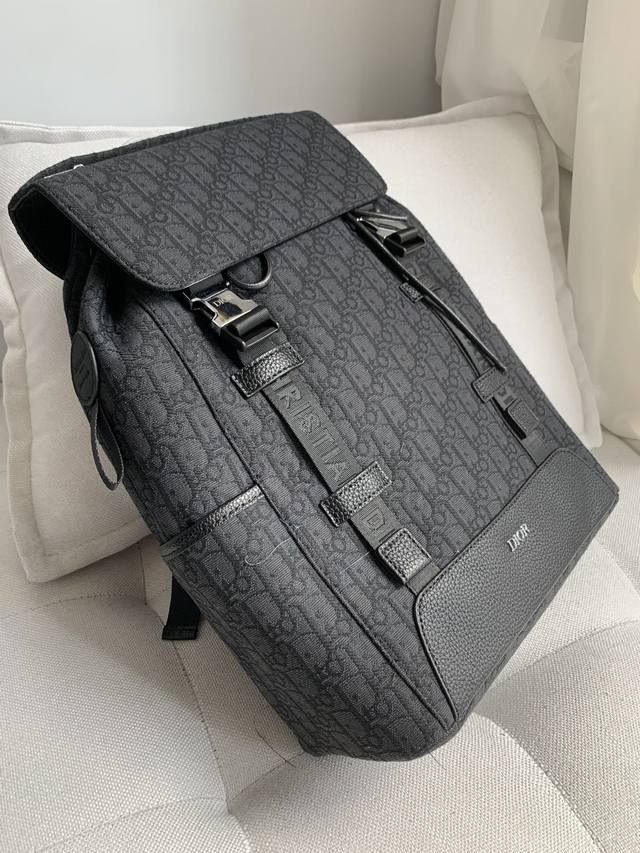 Dior Dior New Oblique Print Canvas Backpack Available Now! This backpack is incredibly stylish, with a clean and simple design. The retro monogram print and the iconic Dior logo in the center make it a head-turner. It's lightweight yet spacious, a must-have for any trip. Size: 31*42.5*14.5cm