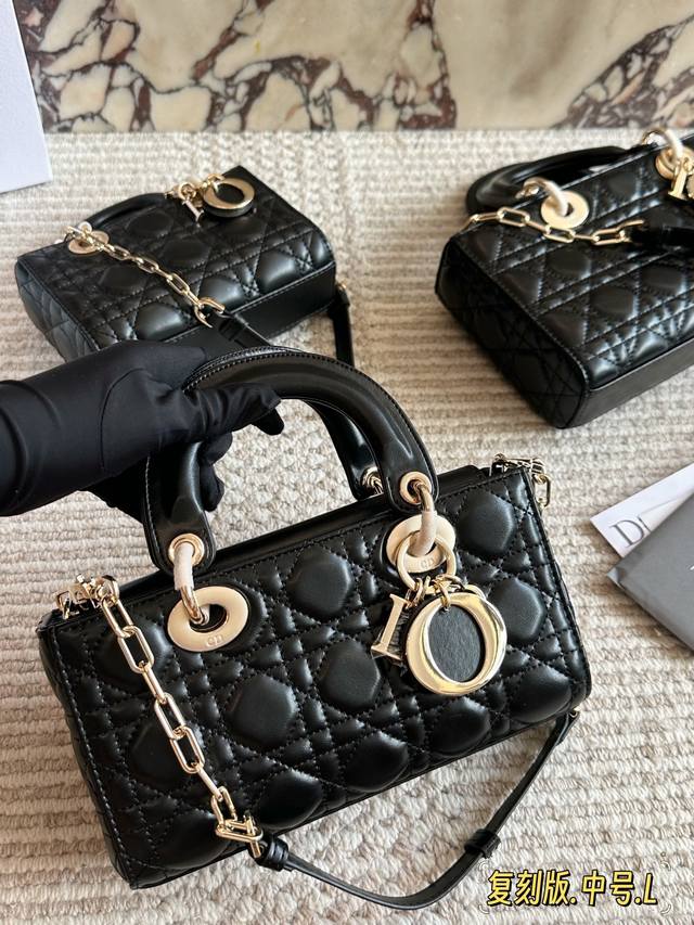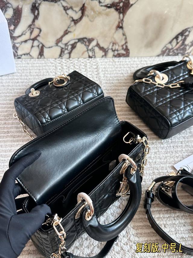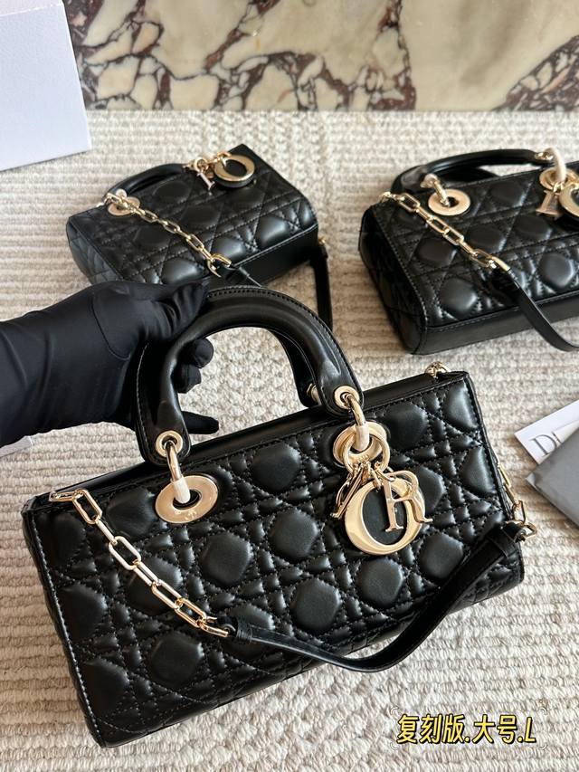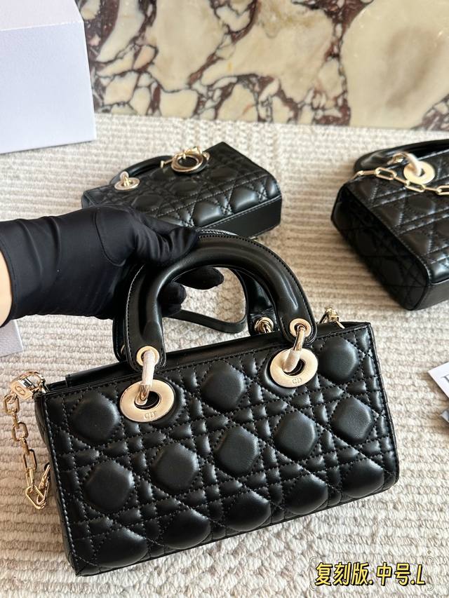 Dior Lady New Long Lambskin Bag with Full Packaging. The new Dior D-Joy is back with a bang! This bag comes with two shoulder straps for multiple carrying options, looking both beautiful and chic. The classic quilted design paired with soft lambskin is elegant and stylish. Sizes: 17cm x 10cm, 22cm x 12cm, 26cm x 14cm.