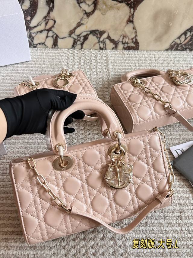 Dior Lady New Long Lambskin Bag with Full Packaging. The new Dior D-Joy is back with a bang! This bag comes with two shoulder straps for multiple carrying options, looking both beautiful and chic. The classic quilted design paired with soft lambskin is elegant and stylish. Sizes: 17cm x 10cm, 22cm x 12cm, 26cm x 14cm.