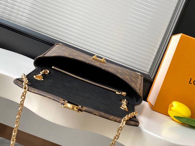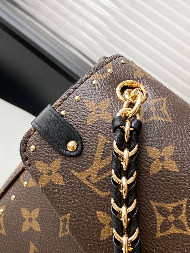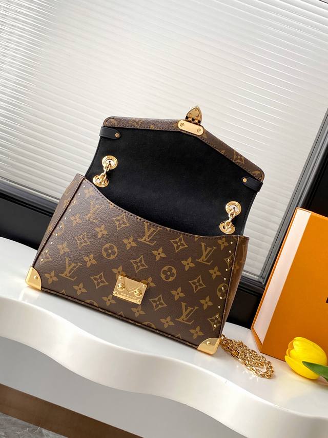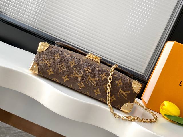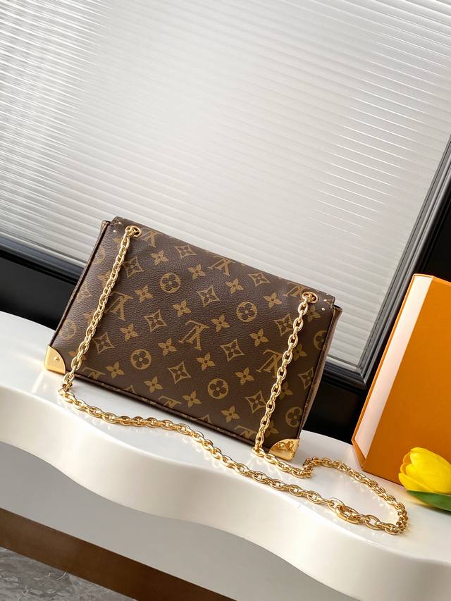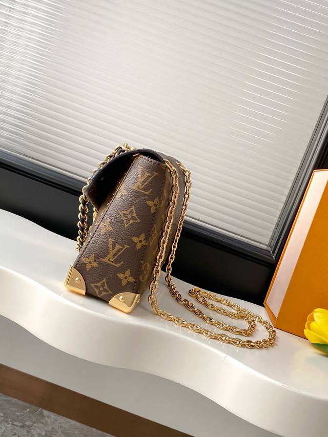 Dynamic 163 chip, top-quality original single M14526 monogram, Trunkie handbag combining Monogram canvas and metal studs, with metallic corner protectors and the iconic S-Lock closure, showcasing the brand's heritage with a retro trunk style. The interior space and zippered pockets easily accommodate everyday essentials, while the sliding chain shoulder strap offers additional carrying options. Dimensions: 16 x 8 x 27 cm (H x W x Length)