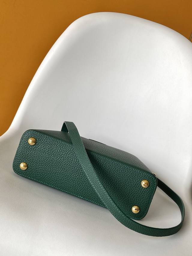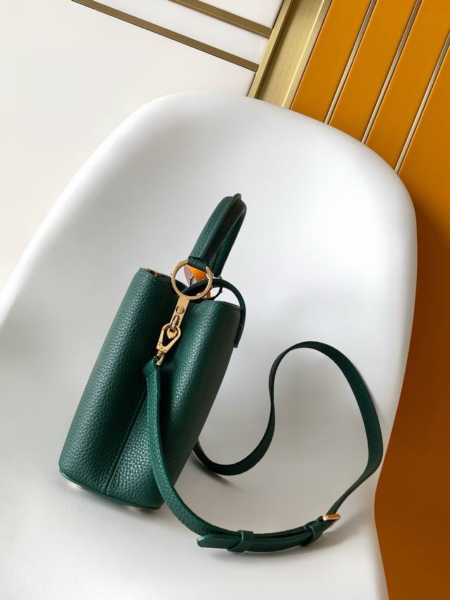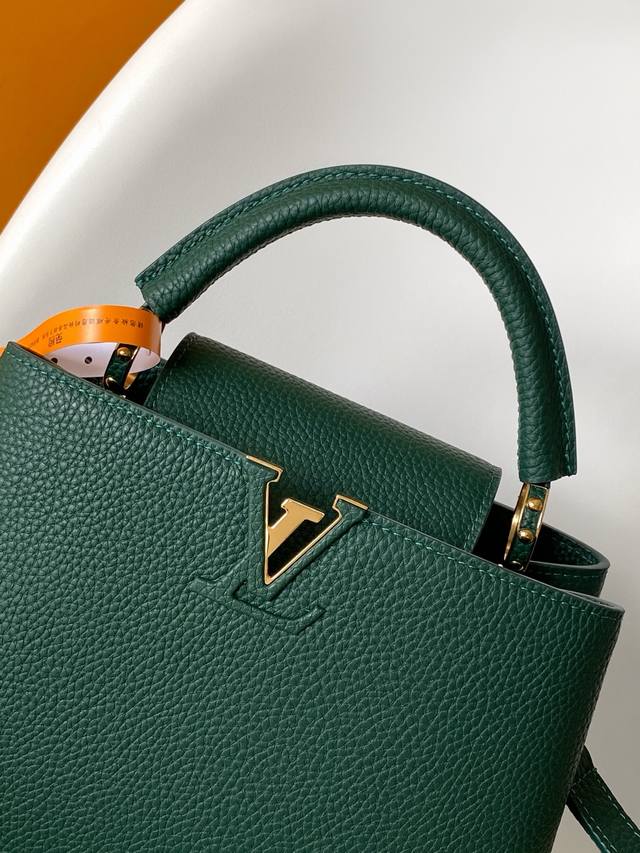 21Cm M24733 Pure White M25090 Pink M24729 Black The Capucines series handbags were launched in 2013 and named after the Paris street where Louis Vuitton first opened its store in 1854. This Capucines BB handbag is crafted from full-grain Taurillon leather and features a distinctive flap adorned with the Monogram floral pattern. The LV logo is wrapped in leather, and the jewel-like handle loops highlight the brand's trunk heritage. A detachable shoulder strap allows for easy hand-carrying or crossbody wear. Dimensions: 27.0 x 17.3 x 9.0 cm (Length x Height x Width); 21.0 x 13.6 x 8.0 cm (Length x Height x Width).