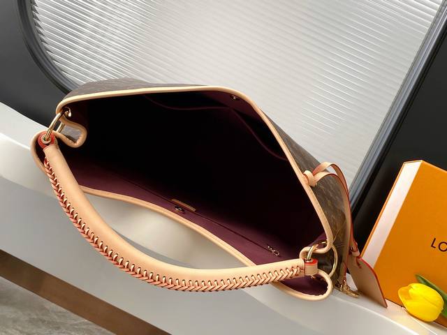 Dynamic 163C Chip Top-Tier Original Enhanced Version Authentic Again Handbag: A fresh interpretation of the iconic Artsy design first launched in 2010, now more flexible, more iconic, and with more refined craftsmanship. Rooted in LV's DNA, this handbag pays homage to Louis Vuitton's exquisite craftsmanship through its classic Monogram canvas base, hand-woven handles, and customizable name tag. Its spacious size allows for a laptop, and multiple pockets are visible when opened. A gold hook can be used to hang playful accessories! Model: M25877; Dimensions: 50X30X15.5Cm