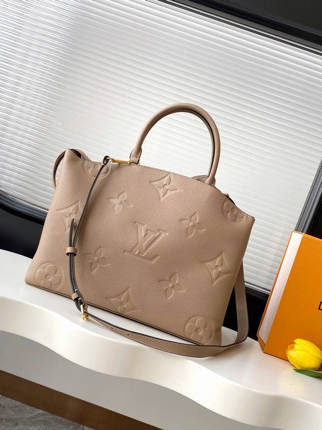 Dynamic 163C Chip Top-Tier Original Enhanced Version M45833 Apricot-Embossed Grand Palais Handbag features an oversized Monogram pattern embossed on soft grained leather, further embodying Louis Vuitton's travel spirit with its nameplate and padlock. Neat compartments and pockets facilitate easy organization, while the detachable and adjustable shoulder strap allows for hand-carry, elbow-carry, and crossbody wear. Detailed Features: 34 x 24 x 15 cm