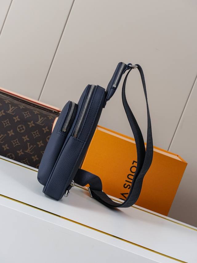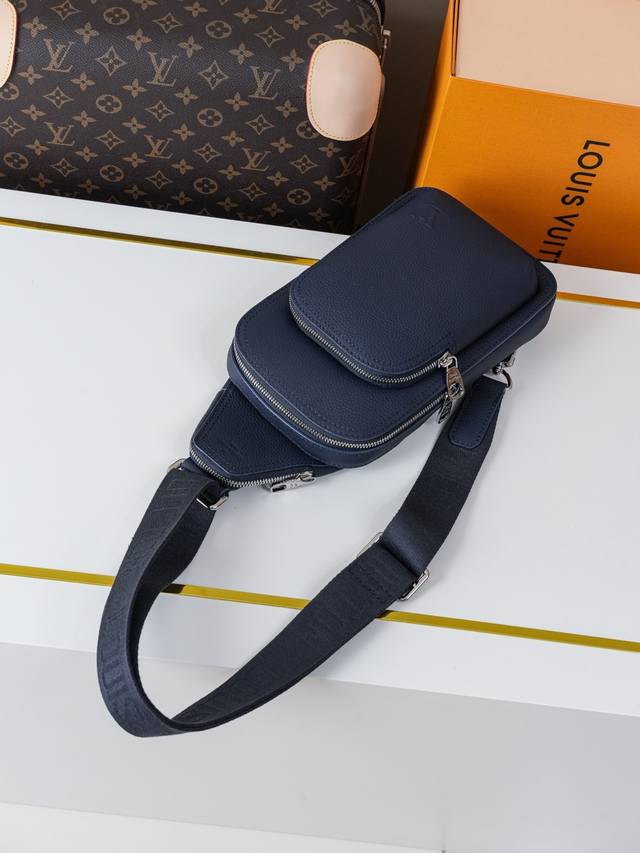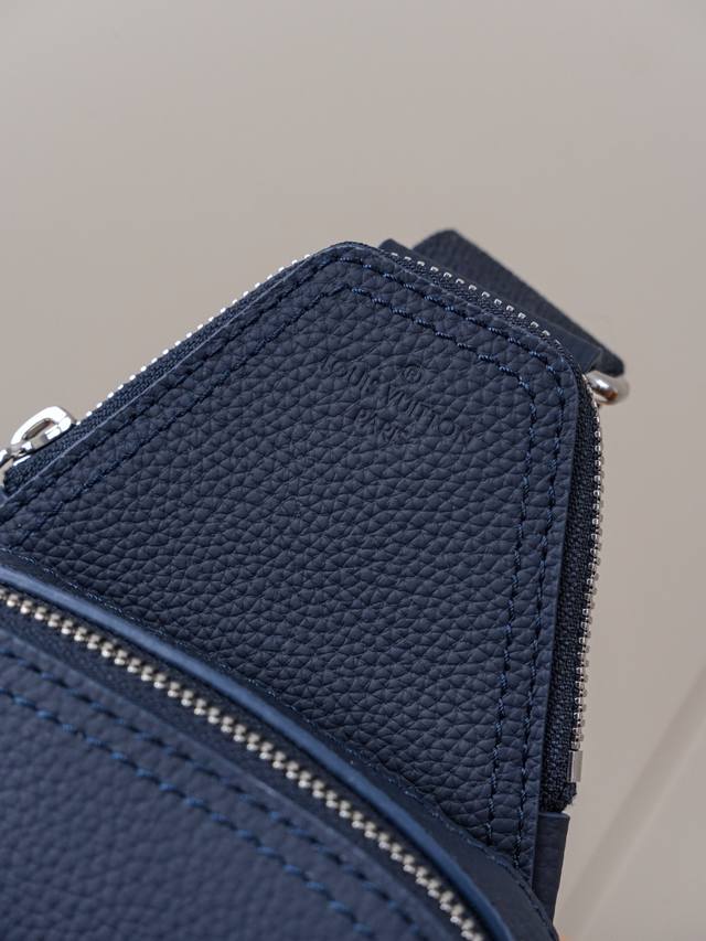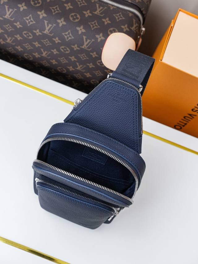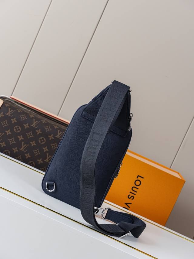 Dynamic 163C01 Chip M15269 Blue Top-Tier Original Individual Background Real Shot Avenue Slingbag Pm is made of waxed calfskin, a durable yet supple leather, and decorated with embossed LV initials from the LV Aerogram series. It has a main compartment, a zippered front pocket, and a small zippered triangle pocket. The adjustable strap allows it to be worn over either shoulder. Dimensions: 16 x 33 x 5.6 cm (Length x Height x Width) Blue Waxed Calfskin Waxed Calfskin Trim Textile Lining Aged Silver Hardware Main Compartment Interior Pocket Front Zippered Pocket Small Zippered Pocket at the Top Strap: Non-removable, Adjustable Strap Drop: 27 cm Maximum Strap Drop: 48 cm
