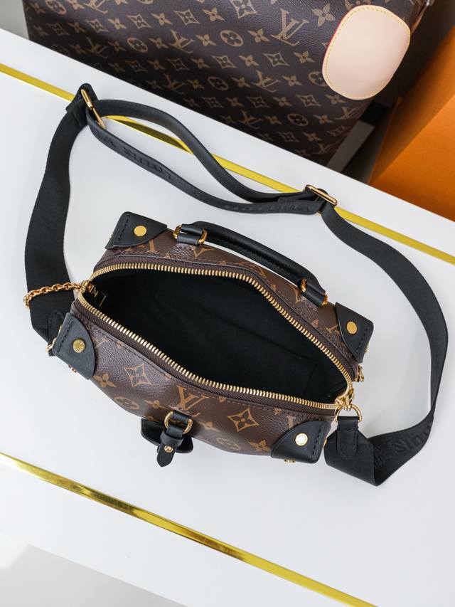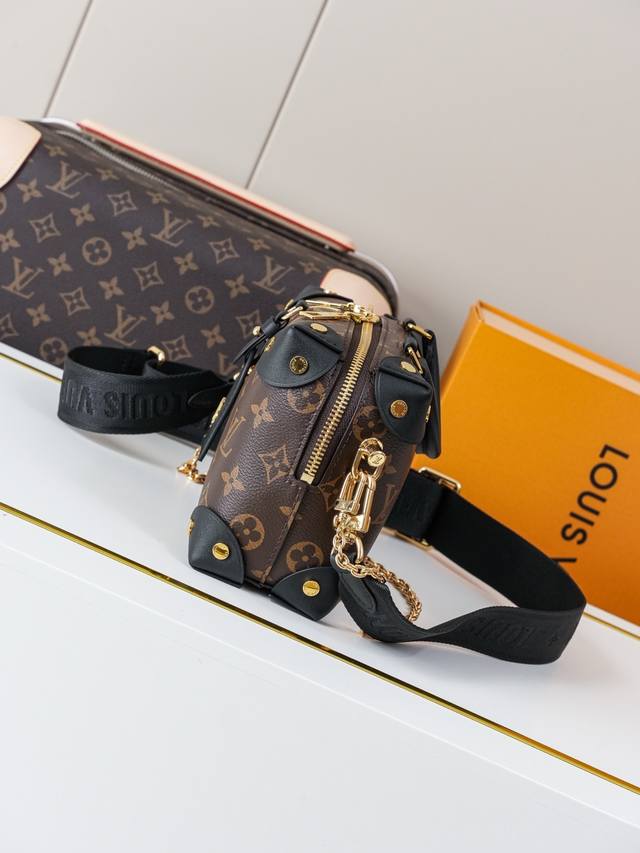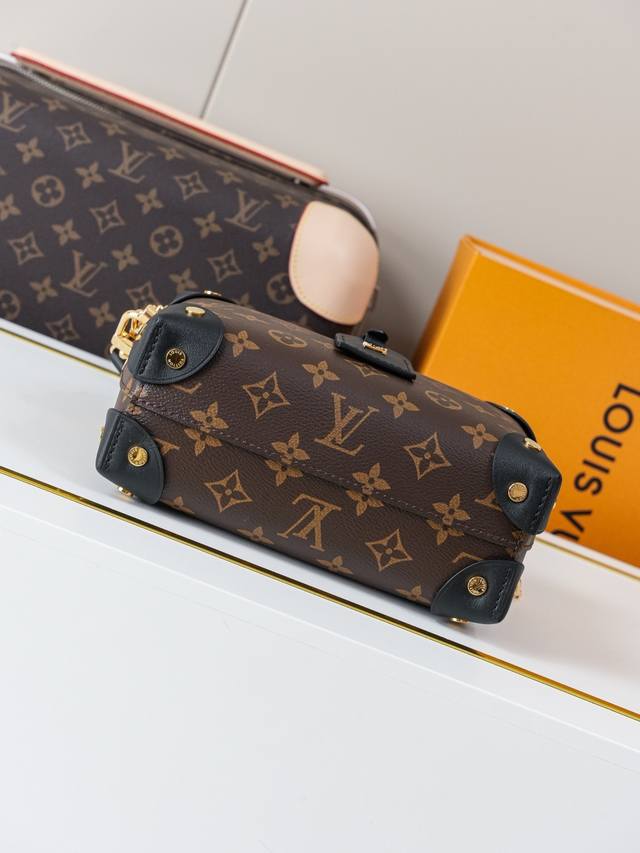Dynamic 163C01 Chip M45571 Monogram Black Top-Tier Original Individual Background Real Shot This Petite Malle Souple handbag is crafted from Monogram canvas, incorporating studded leather corners and a leather nameplate, subtly narrating Louis Vuitton's trunk-making heritage. It features a nautical-style chain, Louis Vuitton Malletier embroidery, and a detachable wide shoulder strap. Monogram coated canvas