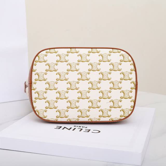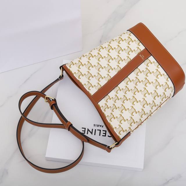 Exclusive new style, boutique quality, made with imported Italian original leather, genuine product development, top-tier original goods, real photos, model: 191442, size: 30X22X13Cm, material: custom-made matching monogram fabric with imported Italian original cowhide, Celine monogram mini bucket bag, retro, lightweight and cute, paired with durable brown original leather, adjustable shoulder strap, large capacity, perfect for work or outings, can also be used as a shopping bag, has a fashionable and retro style, so charming!