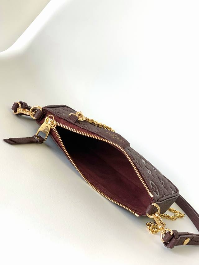 Exclusive real photos of overseas original single items M81862 (burgundy), M81066 (off-white), M80349 (black)! The Spring Collection Easy Pouch On Strap handbag is crafted from Monogram Empreinte leather, exuding sophisticated style with its Monogram embossing and soft texture. The clever use of the chain and adjustable leather shoulder strap allows for easy switching between shoulder and crossbody wear. Dimensions: 19