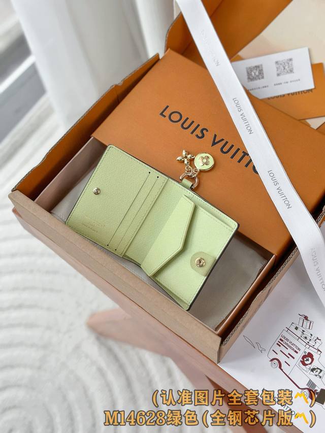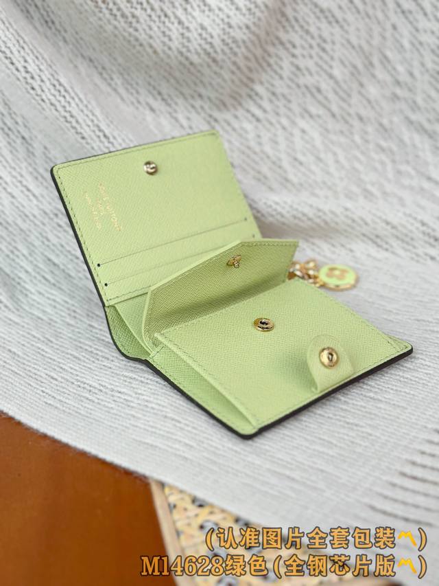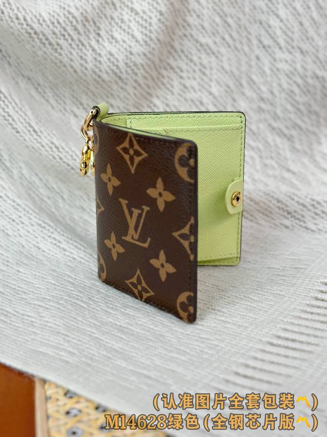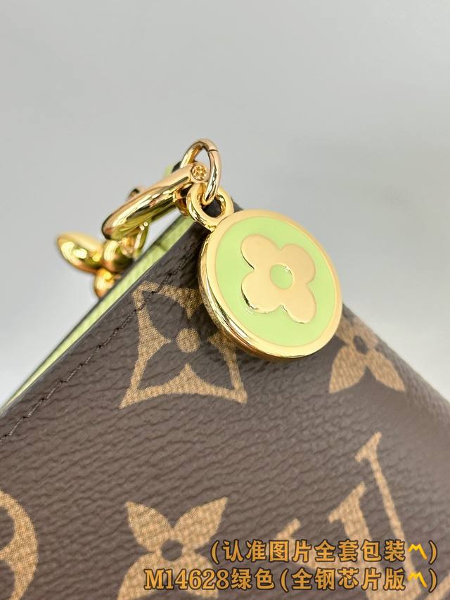 Factory Price P M14628 Green Grade A All-Steel Personalized Custom Version! Size 163! LV Charms Pocket Coin Purse: This compact LV Charms pocket coin purse perfectly balances classic and modern styles. Crafted from the iconic Monogram canvas, it features a striking contrasting leather lining. This practical yet playful design is adorned with an enamel charm and a metal charm, both decorated with the brand's classic Monogram floral pattern. The purse can hold banknotes, coins, and three business cards. Dimensions: 9 x 10 x 2.5 cm (Length x Height x Width).