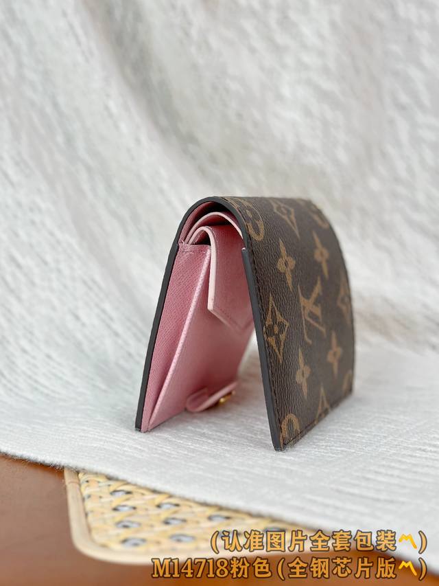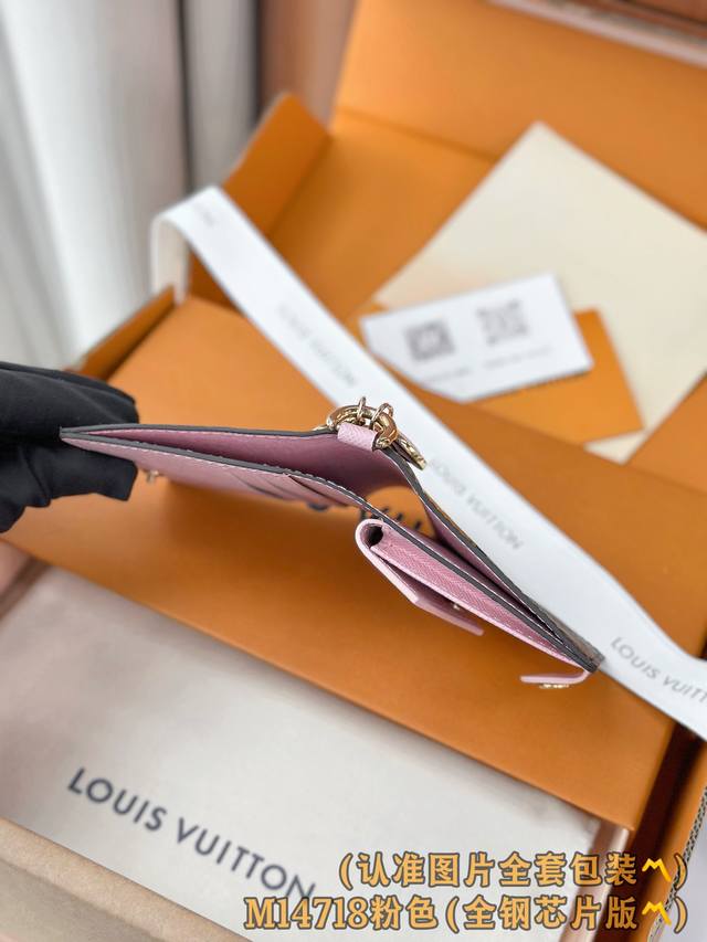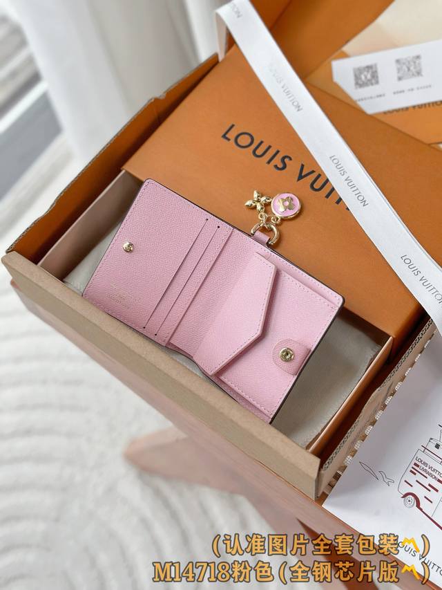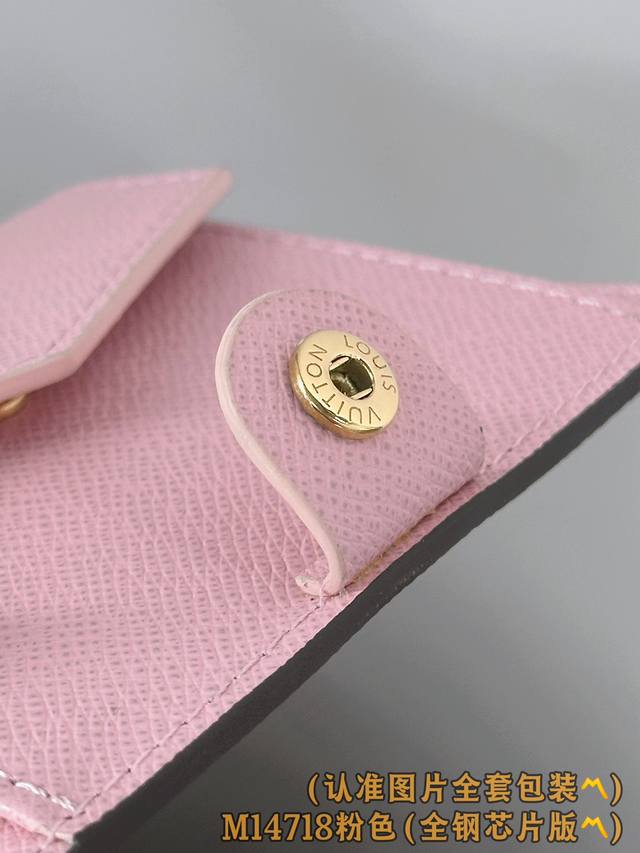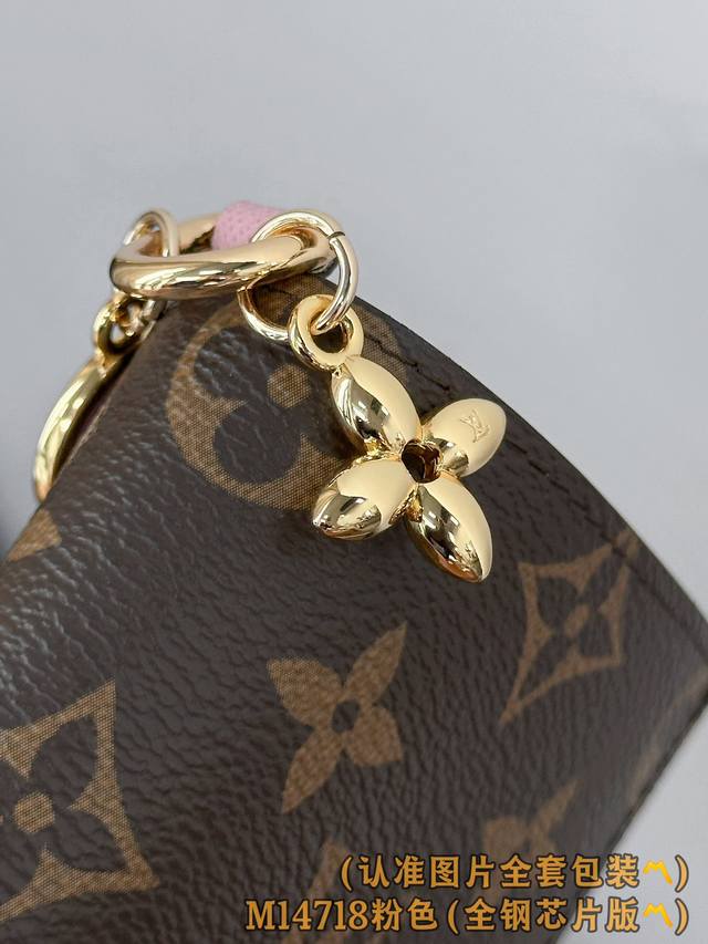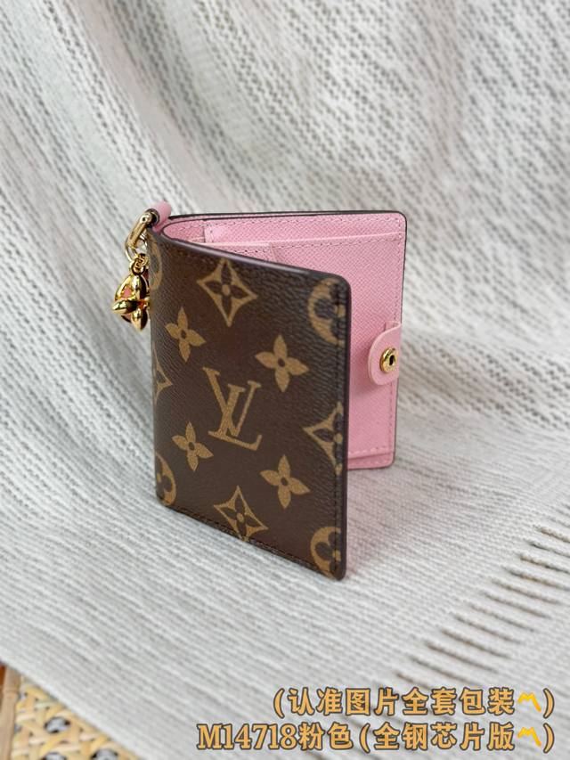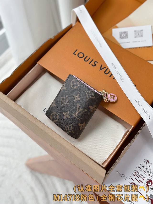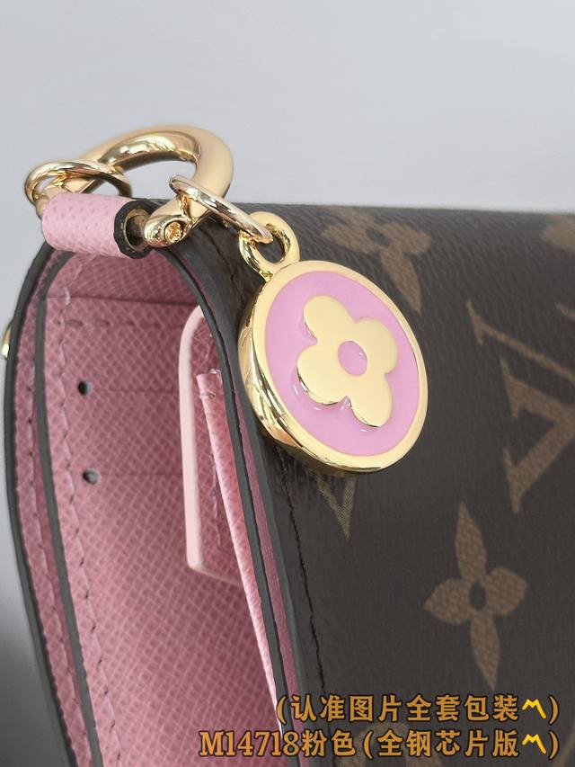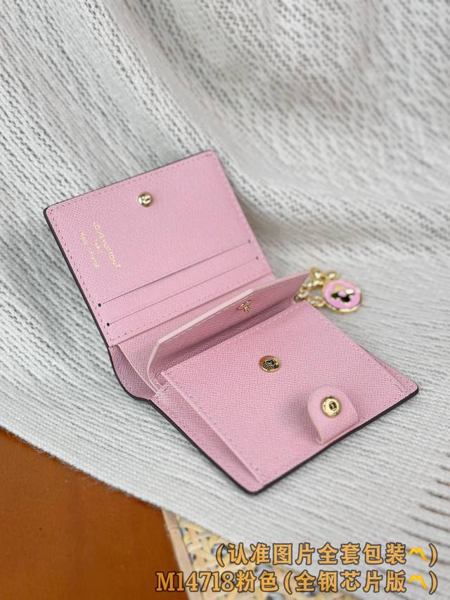 Factory Price P M14718 Pink Grade A All-Steel Personalized Custom Version! Size 163 Available! LV Charms Pocket Coin Purse: This compact LV Charms pocket coin purse perfectly balances classic and modern styles. Crafted from the iconic Monogram canvas, it features a striking contrasting leather lining. This practical yet playful design is adorned with an enamel charm and a metal charm, both decorated with the brand's classic Monogram floral pattern. The purse can hold banknotes, coins, and three business cards. Dimensions: 9 x 10 x 2.5 cm (Length x Height x Width).