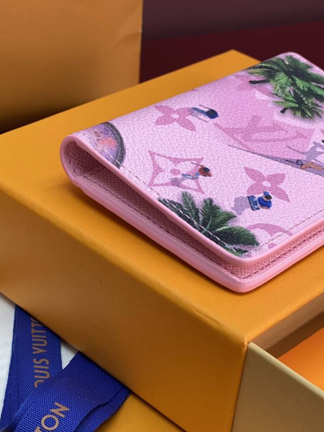Factory Price P M14882 Card Holder! Ski Pink! Pocket Wallet. This pocket wallet is made of Colored Monogram canvas, transforming realistic athlete patterns and silhouettes into miniature sports scene prints, complementing the classic Monogram elements. Card compartments, inner pockets, and outer pockets highlight functionality, making it another great gift. Dimensions: 11.1 x 1 x 7.5 cm (H x W x Length).