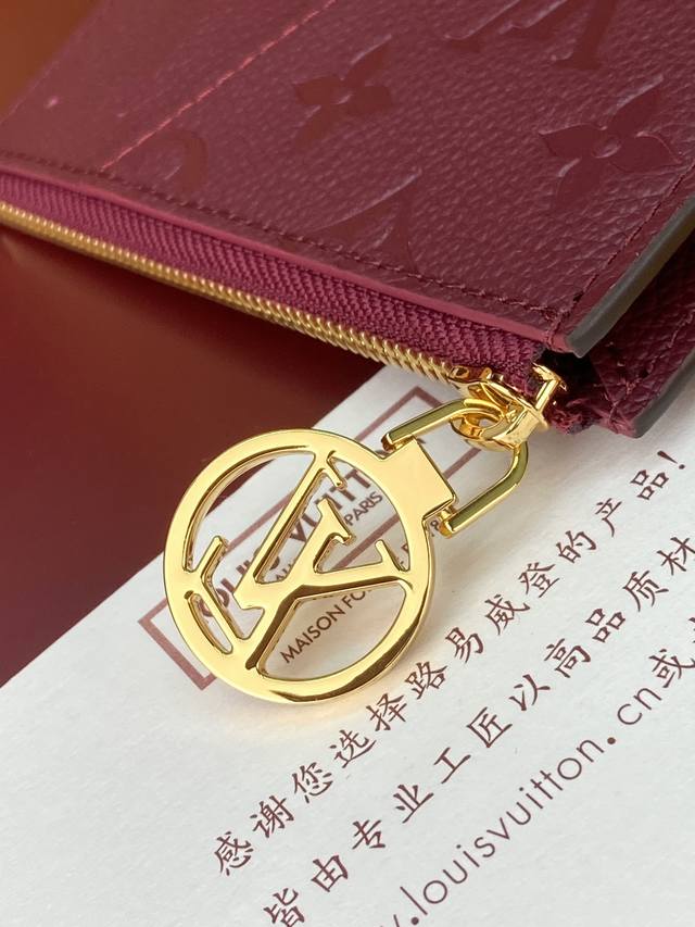 Factory Price P M25763 Purple! Romy Card Holder combines the functionality of an accordion zippered pouch with the minimalist style of a traditional card holder. Monogram canvas with colorful leather lining. L*Circle metal zipper pull adds rich detail. Holds banknotes, coins, or tickets. Size: 12 x 8 x 0.8 cm.