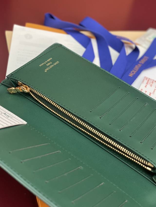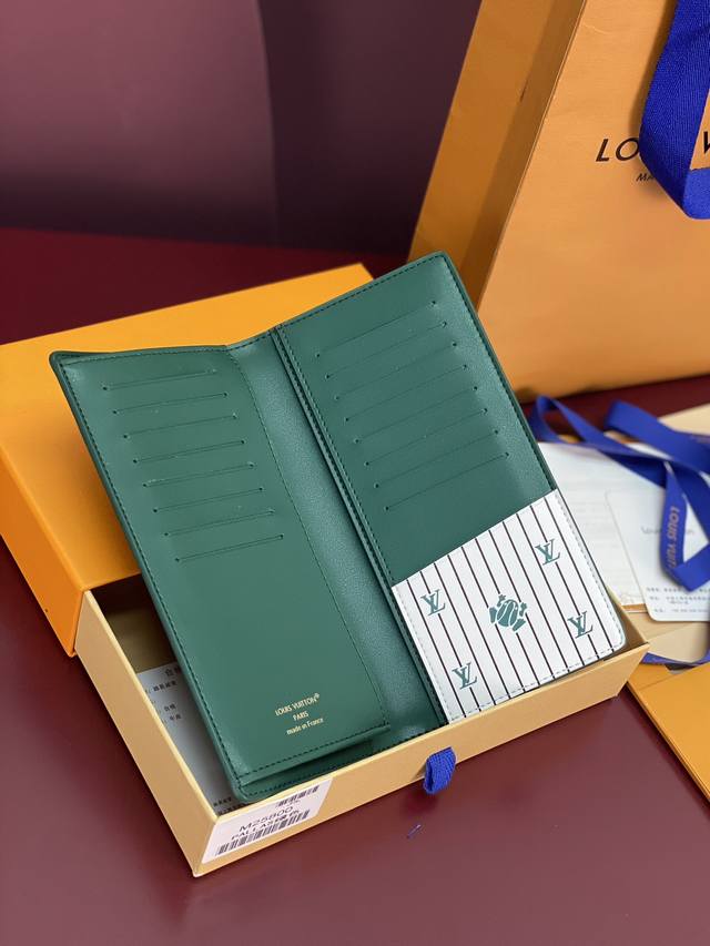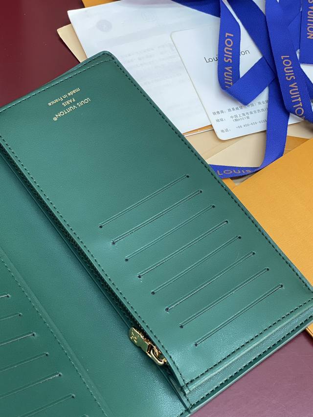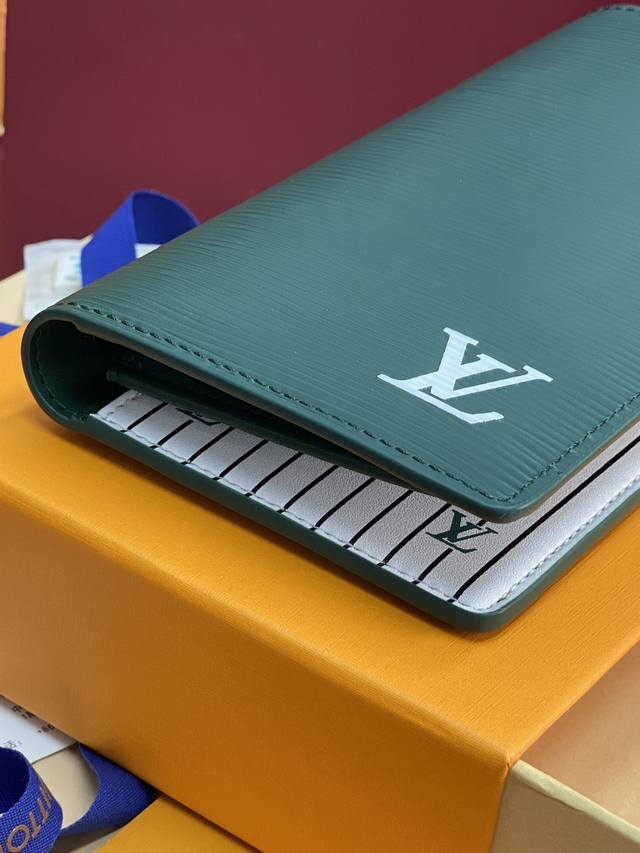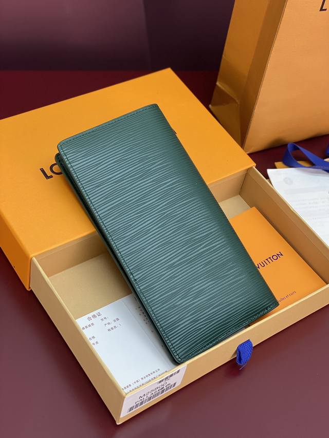 Factory Price P M25800 Green! Water Ripple Long Wallet! Brazza wallet with multiple credit card slots and banknote compartments, very practical, elegant, and soft Epi leather. Size: 10X19Cm.
