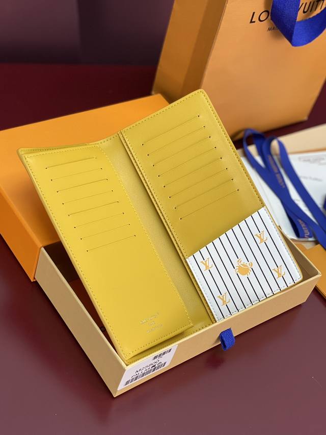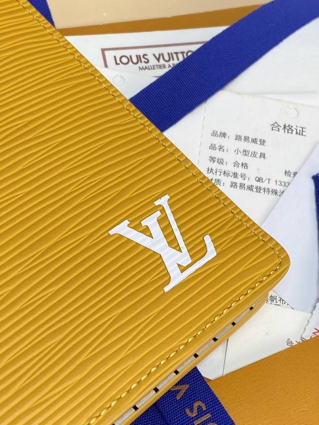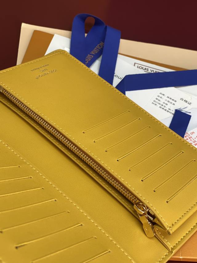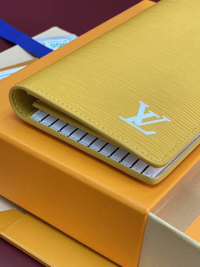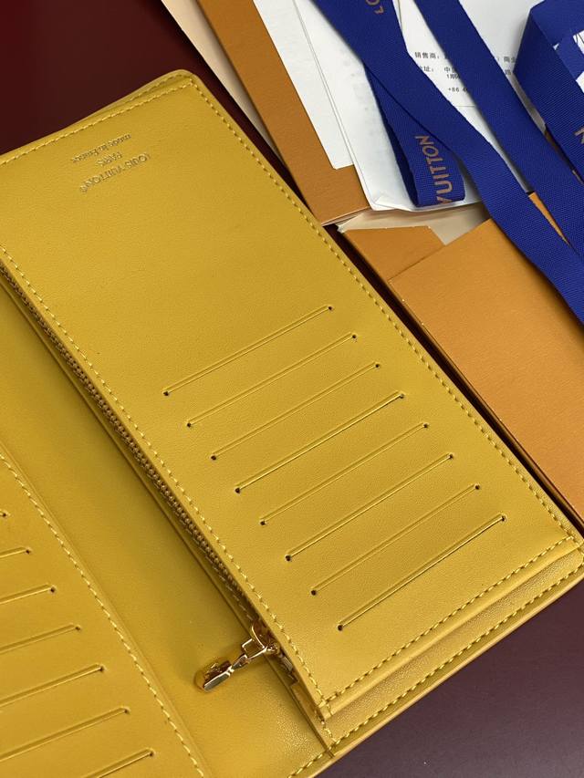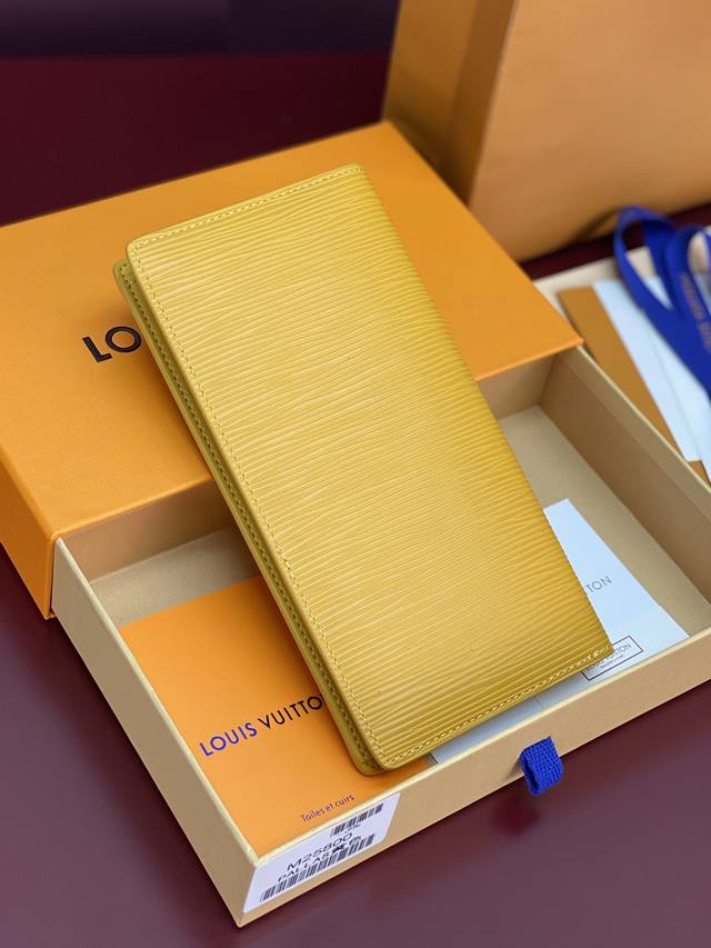 Factory Price P M25800 Yellow! Water Ripple Long Wallet! Brazza wallet with multiple credit card slots and banknote compartments, very practical, elegant, and soft Epi leather. Size: 10X19Cm.