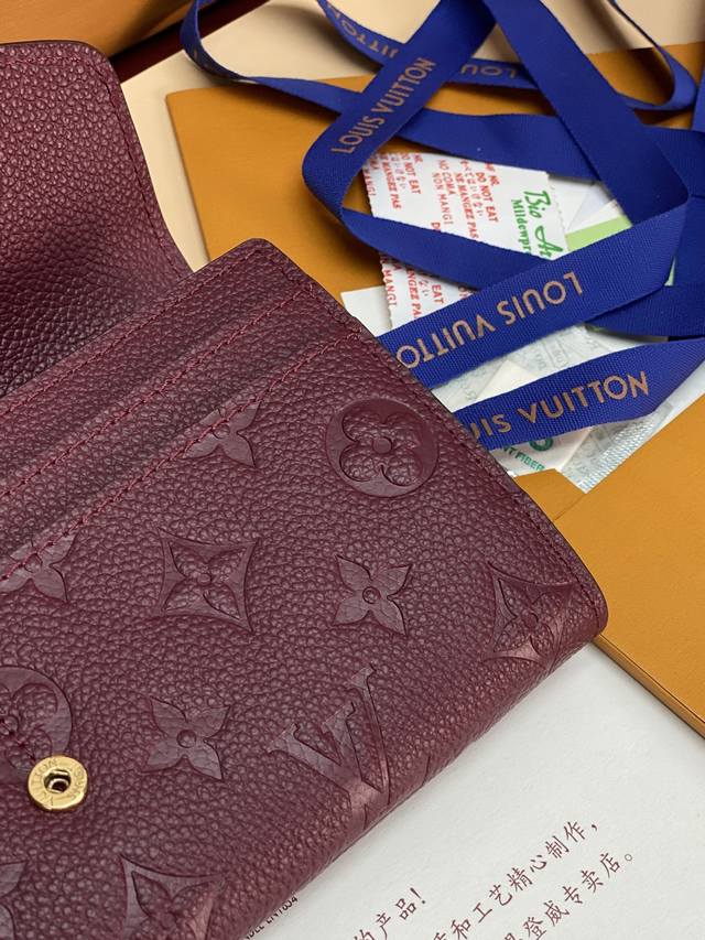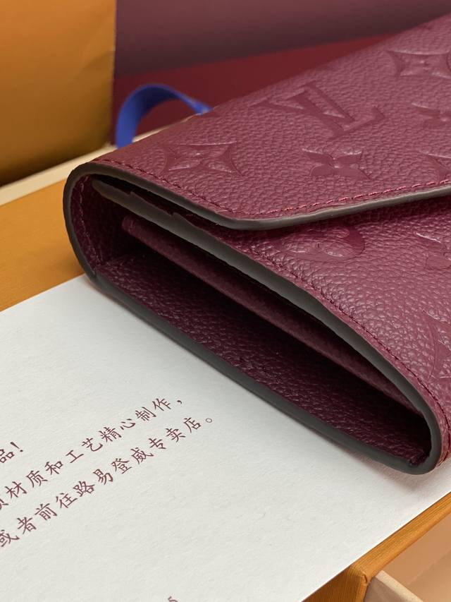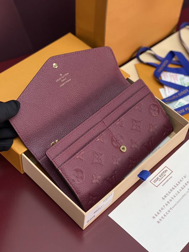 Factory Price P M82257 Purple! This Sarah wallet features Monogram Empreinte leather embossed with the classic Monogram pattern, with an envelope-style flap opening for a credit card compartment and a zippered coin pocket. Detailed specifications: 19 x 10.5 x 2 cm (Length x Height x Width).