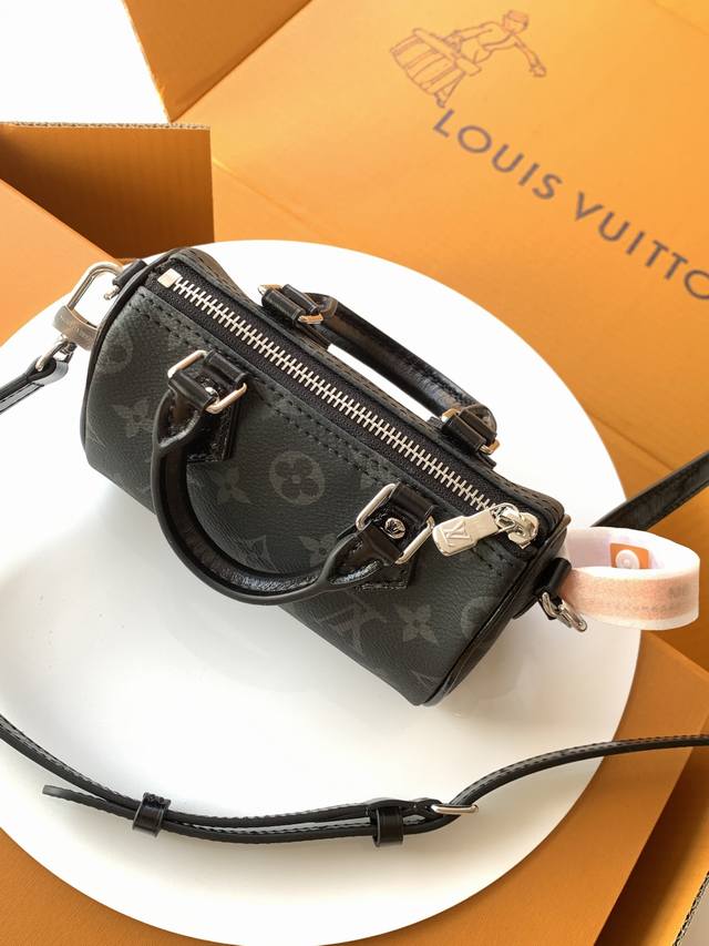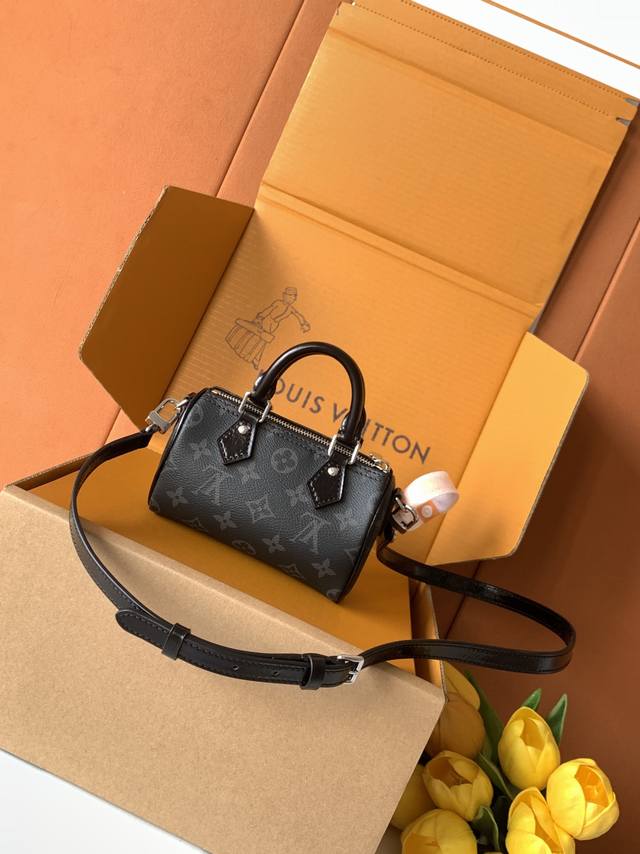 Factory Price P Premium All-Steel Hardware Imported Leather M26573 Black Floral This Nano Speedy handbag features a sleek canvas design with a Monogram Eclipse pattern, exuding elegance and effortlessly brightening your look for day or night. The lustrous metal hardware adds a touch of sophistication, and the ample space can accommodate everyday essentials like a short wallet. The detachable shoulder strap allows for multiple carrying options. 16 x 10 x 7.5 cm Length x Height x Width Monogram Eclipse Pattern Coated Canvas Cowhide Leather Trim Fabric Lining Metal Hardware Zipper Closure Holds Smartphone, Earphones, Victorine Wallet, Keys and Lipstick Shoulder Strap: Detachable, Adjustable Strap Half Length: 45.5 cm Strap Half Length Adjustable to: 54.0 cm Handles: Double Handles