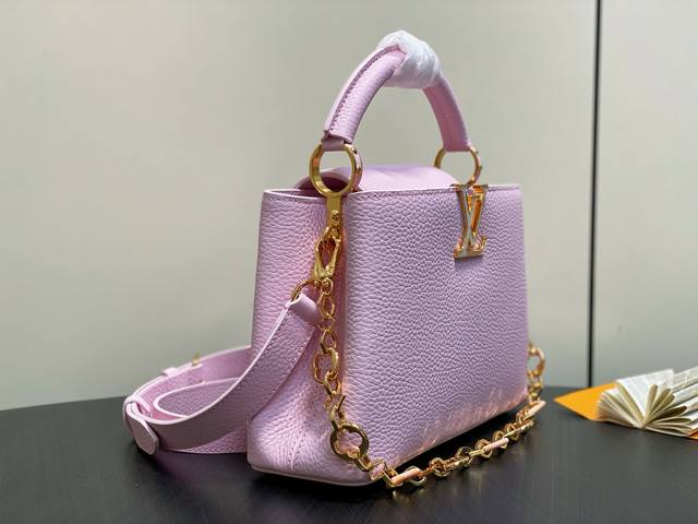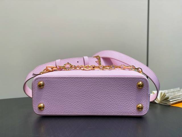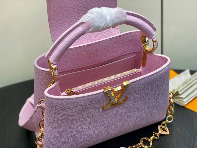 Factory Price P Top-Tier Original M14970 Pink Purple M14381 Chain Full Leather Capucines BB Handbag (Na Ying Style). The Capucines series is named after the Parisian street where Louis Vuitton first opened its store in 1854. This time, it is added to the Harmony series in a mini version design. Taurillon calfskin creates a classic structure, and the decorative chain gives the Monogram flower jewelry texture. Ample space is convenient for storing short wallets, keys, lipsticks and other daily necessities. 17 X 9 X 27 cm (H x W x Length)