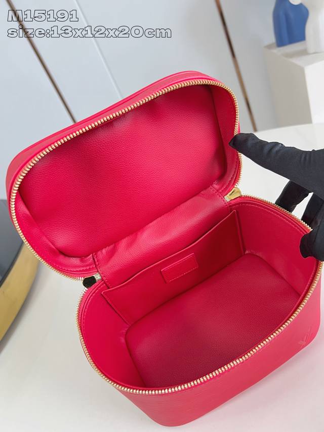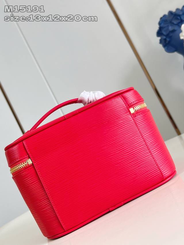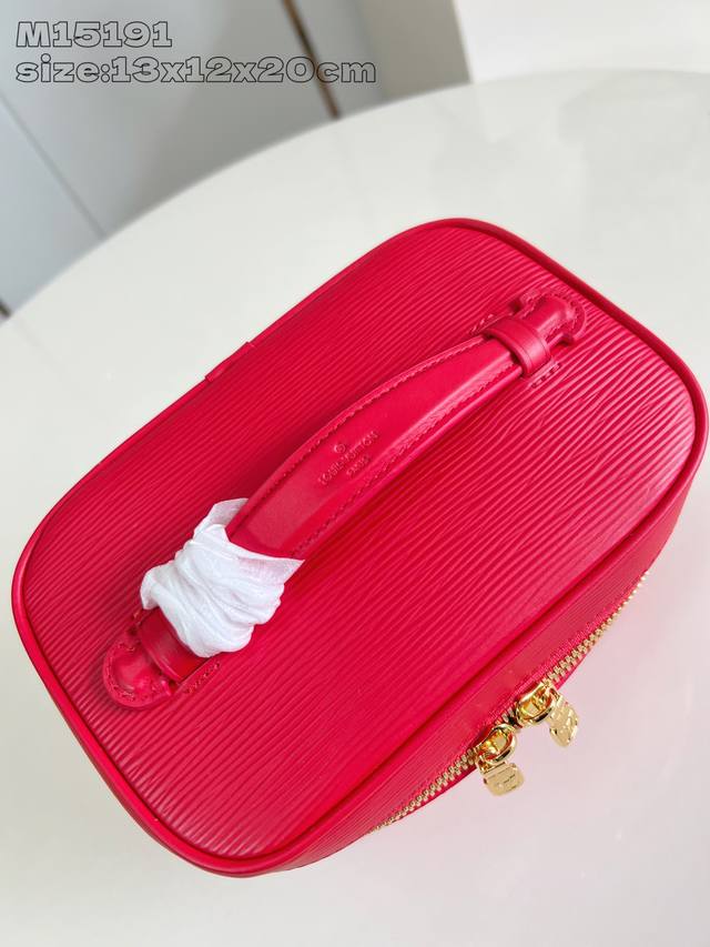 Factory Price P Top-Tier Original M15191 Bright Red Mini Makeup Bag. Inspired by Louis Vuitton's lipstick collection, this bag features a striking color in Epi grain leather and a washable fabric lining, showcasing the brand's elegant style. A zippered pocket beneath the flap provides secure storage, making it a perfect choice for home or travel organization. 13.5 x 12 x 20 cm (H x W x Length)