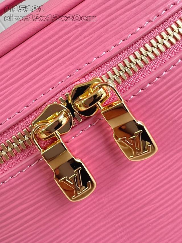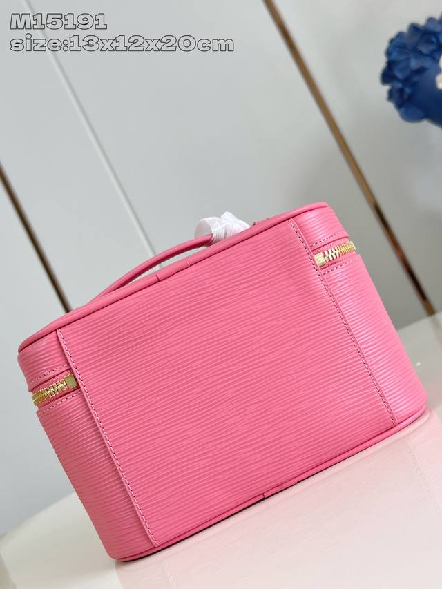 Factory Price P Top-Tier Original M15191 Pink Mini Makeup Bag. Inspired by Louis Vuitton's lipstick collection, this bag features a striking hue on Epi grain leather and a washable fabric lining, showcasing the brand's elegant style. A zippered pocket beneath the flap provides secure storage, making it a perfect choice for home or travel organization. 13.5 x 12 x 20 cm (H x W x Length)