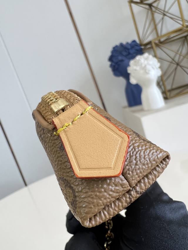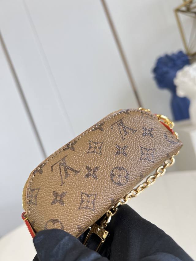 Factory Price P Top-tier original M25694 Yellow Flower Lipstick Makeup Bag. This mini version deconstructs the classic design of the brand's makeup bag, creating an excellent storage solution for a single lipstick. Made of Monogr Am canvas with a Vuittonite lining, it features a lustrous chain and spring clasp, showcasing a harmonious blend of heritage and functionality. 6 x 3.3 x 11 cm (H x W x Length)