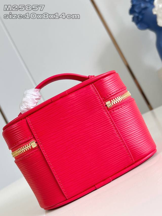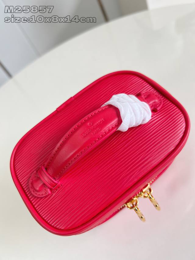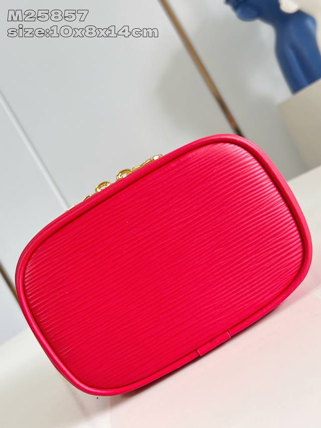 Factory Price P Top-Tier Original M25857 Bright Red Nice Nano Cosmetic Bag. This bag boasts a luxurious style crafted from grained Epi leather and a washable fabric lining, subtly echoing the lipstick colors from the Louis Vuitton Beauty collection. Double zipper closures and an interior slip pocket highlight its functionality; its compact design easily accommodates toiletries and cosmetics, making it another ideal travel companion. 10.2 x 8.5 x 14 cm (H x W x Length)