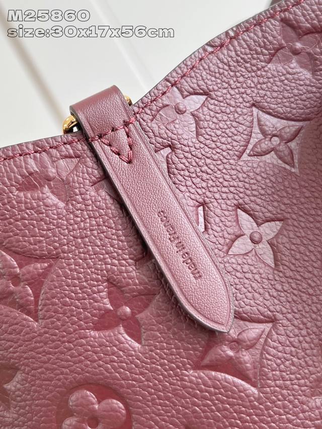 Factory Price P Top-Tier Original M25860 Purple-Red Embossed All-In-One Medium Handbag Design. As its name suggests, this all-in-one handbag can be flexibly transformed into a tote bag or hobo bag, making it an excellent choice for office commutes and weekend getaways. The Monogram Empreinte leather body is paired with a metal LV padlock and iconic branding, while the handle design is inspired by traditional trunks. Its lightweight and flexible construction can accommodate a laptop and other everyday essentials. 30.5 X 17 X 56.5 cm (H x W x Length). Note: This item is too large and does not come with packaging.