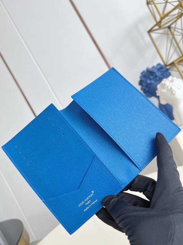 Factory Price P Top-Tier Original M26795 Blue Passport Cover - A Modern Traveler's Ideal Accessory. This coated canvas passport cover combines style and practicality. It features four credit card slots and two convenient pockets for quick passport access. 10 x 14 x 2.5 cm (Length x Height x Width)