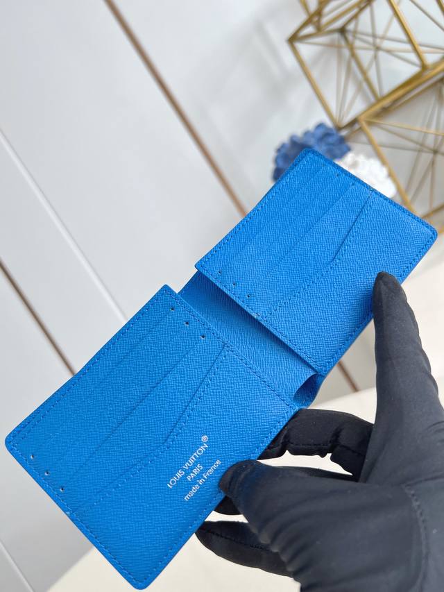 Factory Price P Top-Tier Original M26801 Blue Slender Wallet Made of Monogram Canvas, featuring multiple pockets for credit cards, bills, and receipts. 11.5 x 9 x 1.5 cm Length x Height x Width