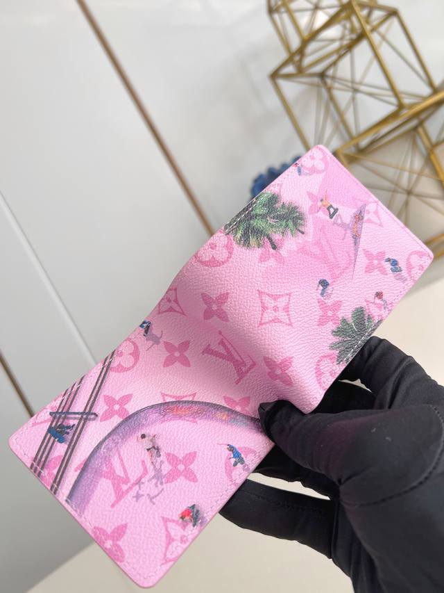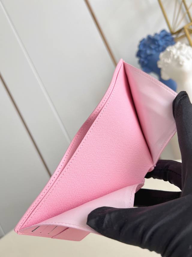 Factory Price P Top-Tier Original M26802 Pink Slender Wallet Made of Monogram Canvas, featuring multiple pockets for credit cards, bills, and receipts. 11.5 x 9 x 1.5 cm Length x Height x Width