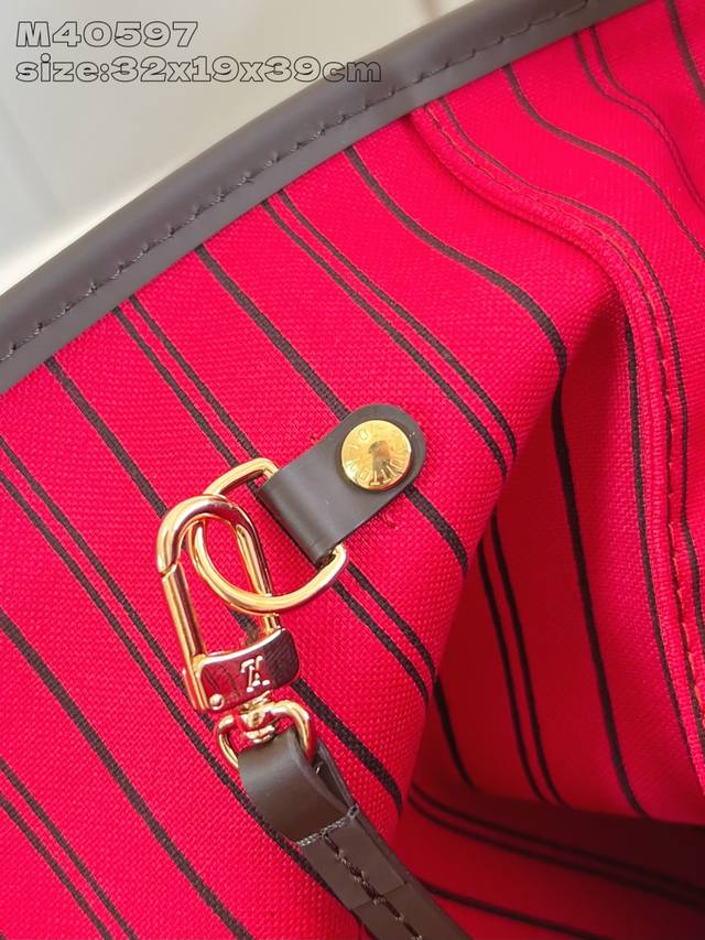 Factory Price P Top-Tier Original M40597 This Neverfull Large Tote Bag features Damier Ebene canvas with cowhide leather trim, and a spacious design with a vibrant fabric lining. The side straps offer different looks whether tightened or loose. Slim handles allow for easy shoulder or elbow carrying, and a detachable zip pocket can be used as a clutch or pocket. 32 x 19 x 39 cm (H x W x Length)