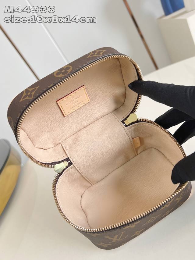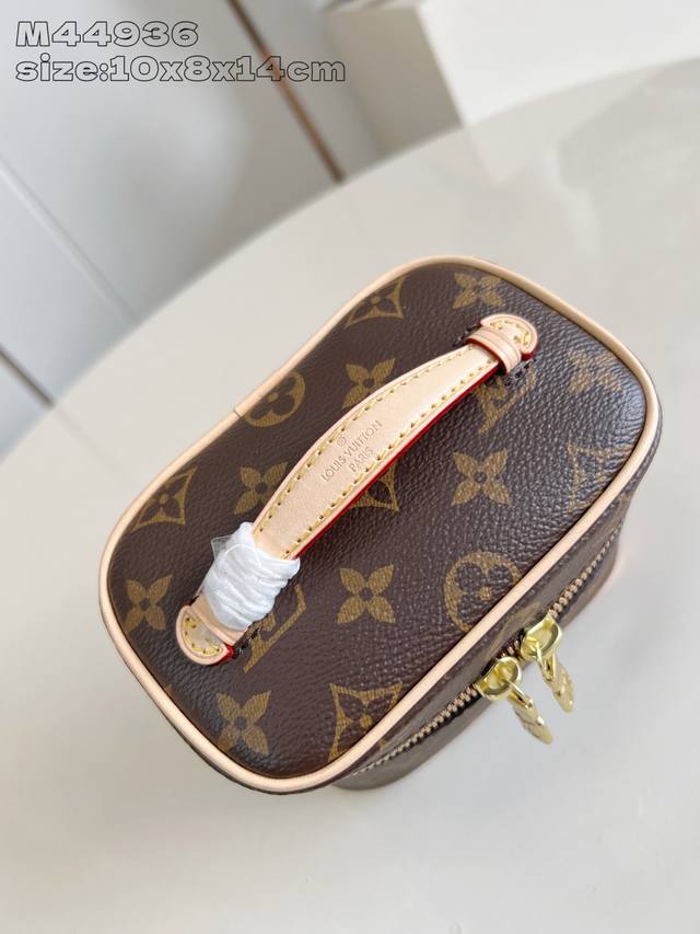 Factory Price P Top-Tier Original M44936 Nice Nano Makeup Bag. This compact bag is crafted from Monogram canvas and can be placed in the bathroom to store nail polish, lipstick, and other beauty products, or placed in a handbag to organize small items. Laying the handle flat allows it to fit into small spaces. 10.2 x 8.5 x 14 cm (H x W x Length)
