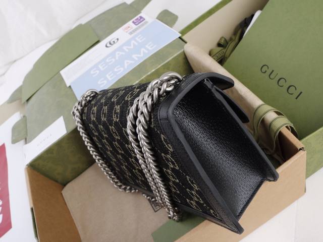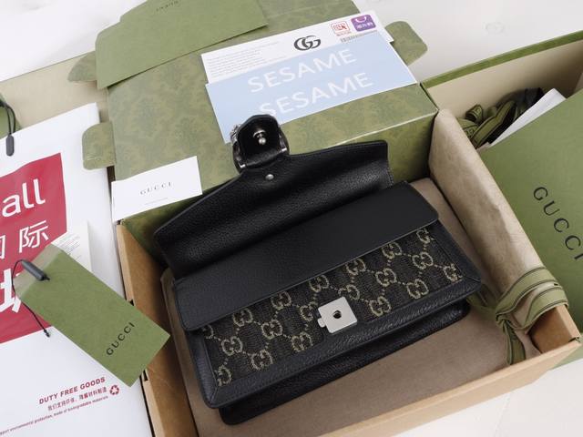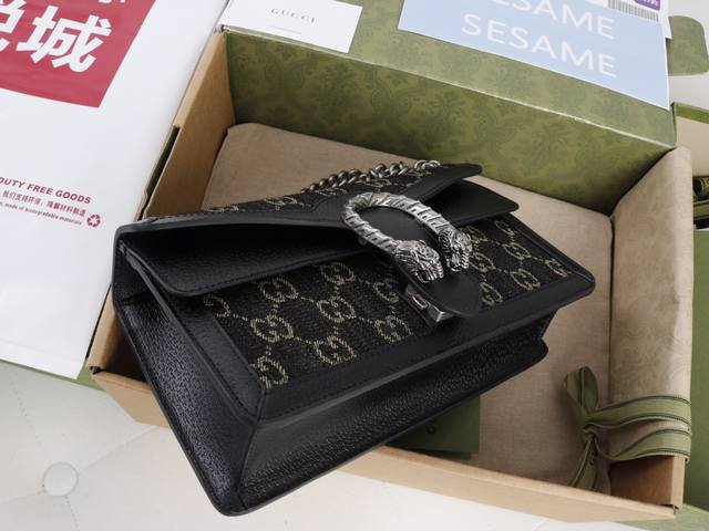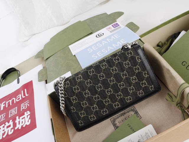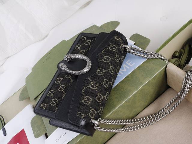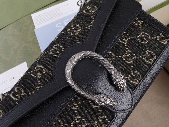 Factory Price. Top-quality original leather, top-grade original single item with complete boutique packaging. Description: The textured tiger head design is a classic feature of the Dionysus series, evoking memories of iconic design symbols. Felines permeate the brand's design world, conveying its fascination with the wild beauty of the natural world. This piece features vintage silver accessories paired with black and ivory Gg denim jacquard fabric. Model 499623 Denim Black Jeans. Made with boutique-quality denim fabric and imported cowhide, the hardware is meticulously polished with clear and visible textures, exhibiting the highest quality. Dimensions: 25 x 13.5 x 7 cm.