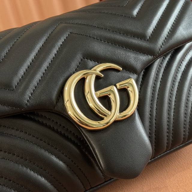 Features full boutique packaging, imported original sheepskin, pure copper hardware, and the iconic GG Marmont series. The bag incorporates the signature double G design and faceted chain strap, crafted from supple leather with a soft, flowing silhouette. A clean, minimalist back pocket enhances the practicality of the medium and large sizes. Features include: Black V-shaped Matelass