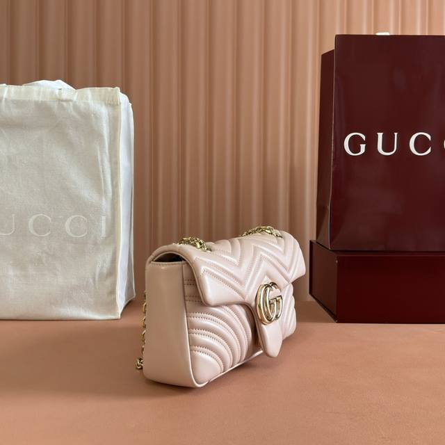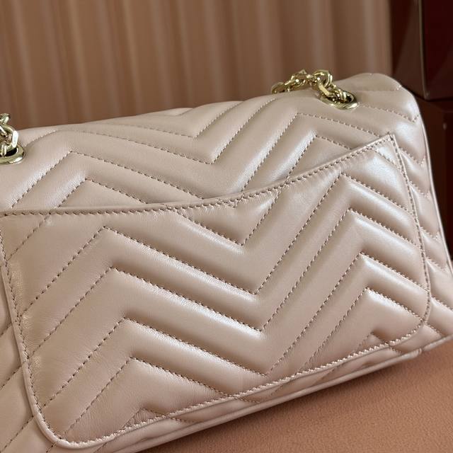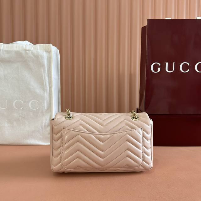 Features full boutique packaging, imported original sheepskin, pure copper hardware, and the brand's iconic GG Marmont series. The bag incorporates the iconic double G design and faceted chain strap, crafted from supple leather with a soft, flowing silhouette. A clean, minimalist back pocket enhances the practicality of the medium and large sizes. Features include: Black V-shaped Matelass