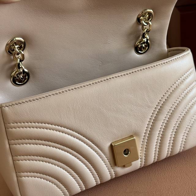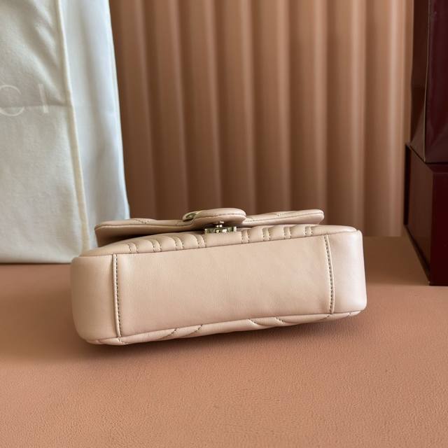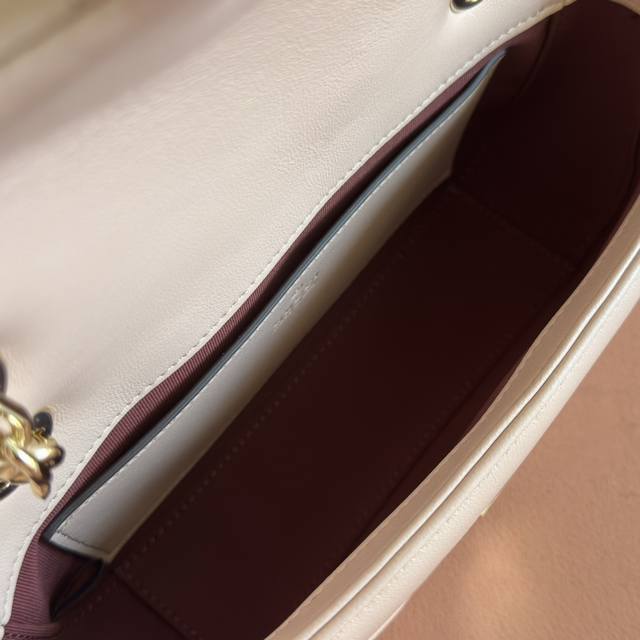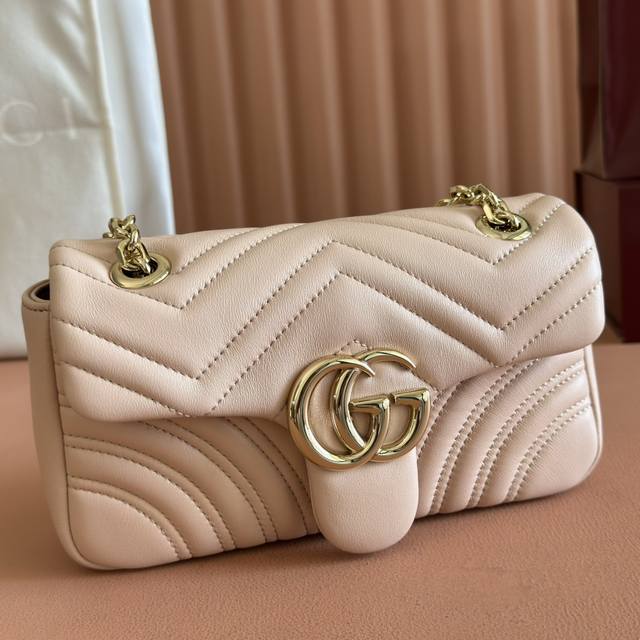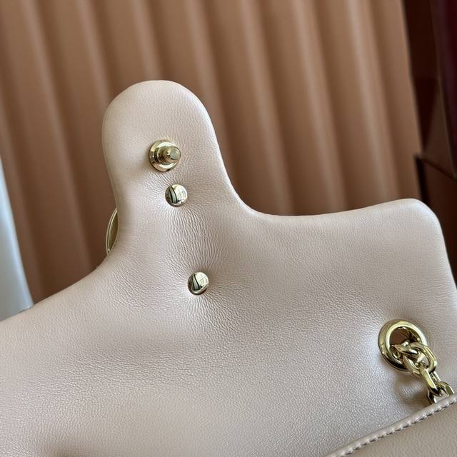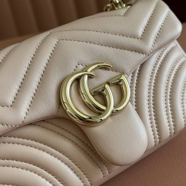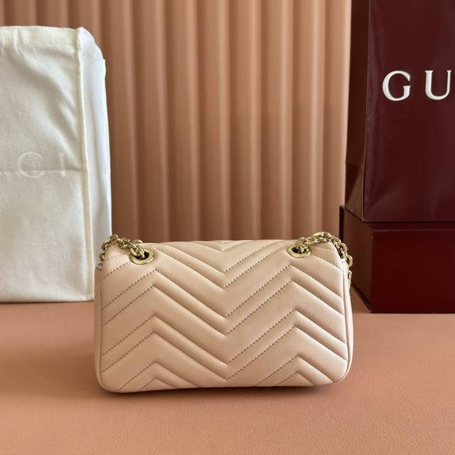 Features full boutique packaging. The iconic GG Marmont series incorporates double-G shaped hardware and a faceted chain strap, crafted from supple leather for a softly contoured shape. White V-shaped Matelass