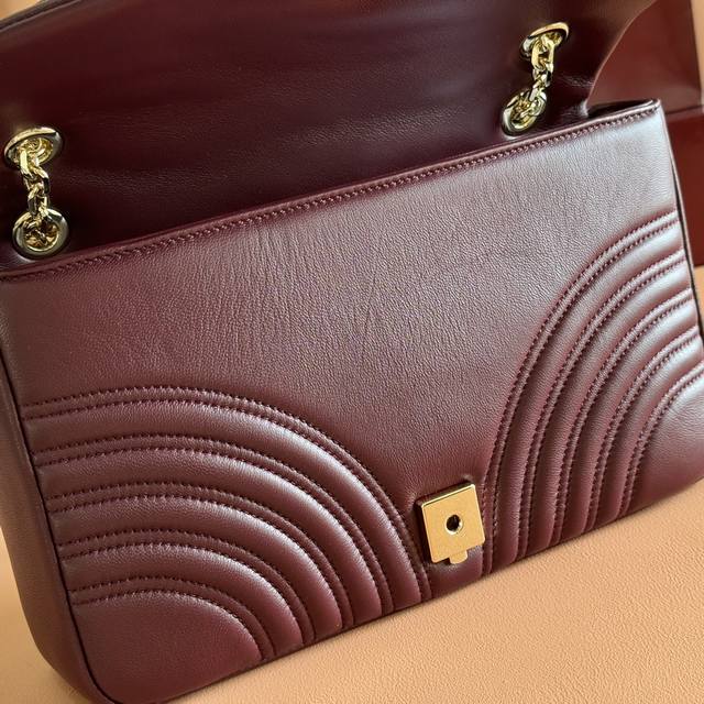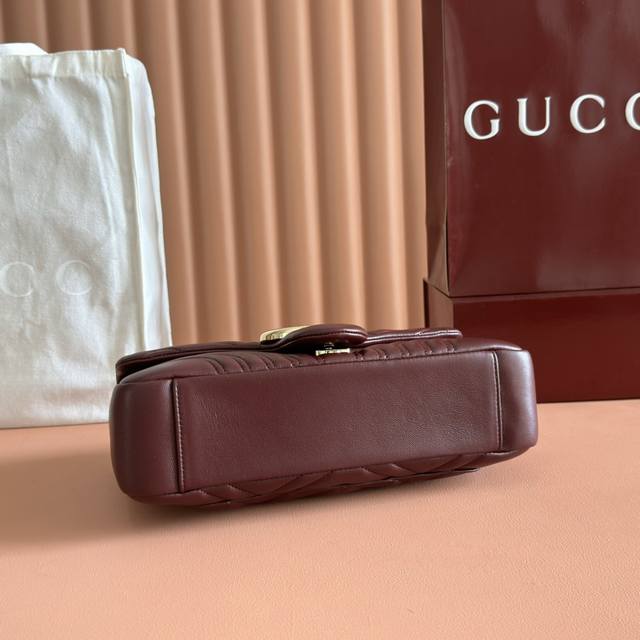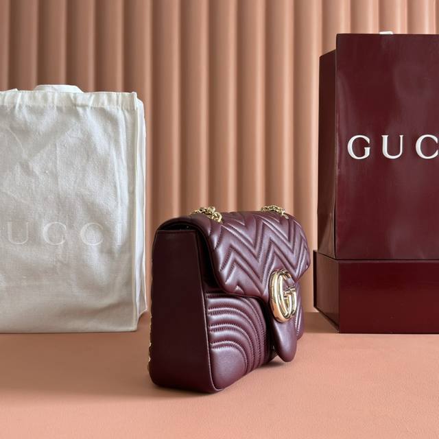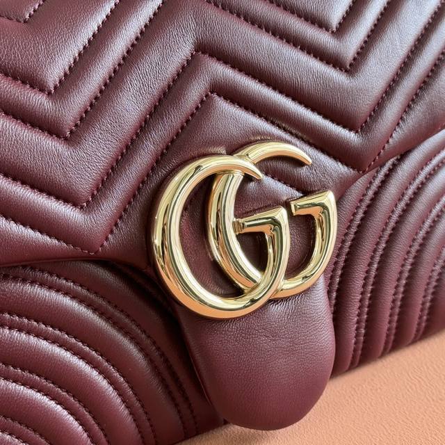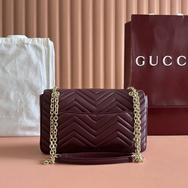 Features the brand's iconic Gg Marmont series, crafted with meticulous attention to detail. The bag incorporates double-G styling hardware and a faceted chain strap, crafted from supple leather to create a soft, streamlined shape. A clean, minimalist back pocket enhances the practicality of the medium and large sizes. Black V-shaped Matelass